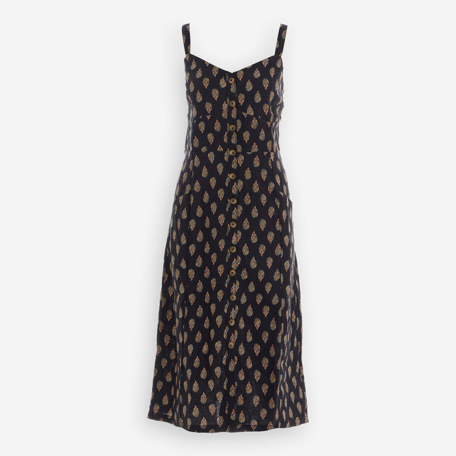 • Black Paisley Linen Midi Dress