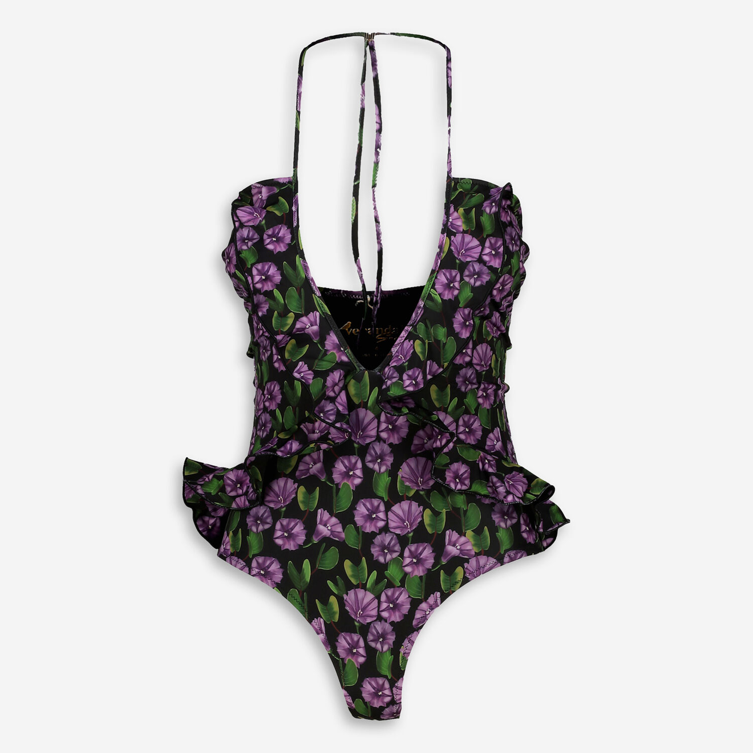• Black & Purple Floral Patterned Swimsuit