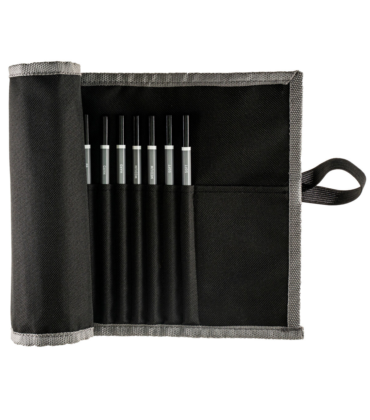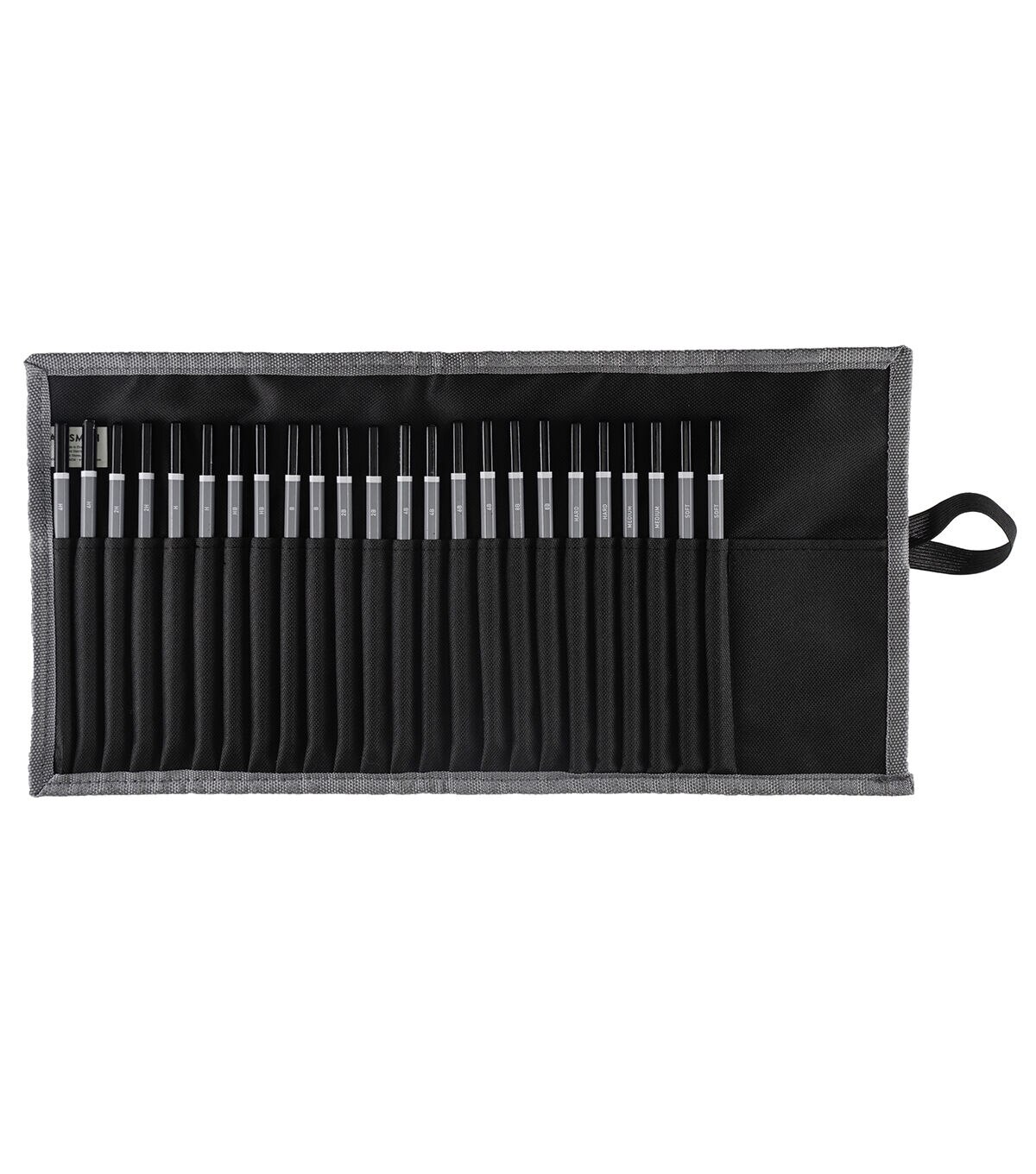 Keep sketching and drawing pencils accessible and organized using the Artsmith Roll Up Pencil Storage Case. Made of high-grade polyester, this black case protects your pencils from dust and damage. Use it to store up to 24 pencils. It is designed with an extra pocket that lets you store sharpeners, erasers and other accessories. This roll-up case can also be easily folded into a compact unit for ease of portability.