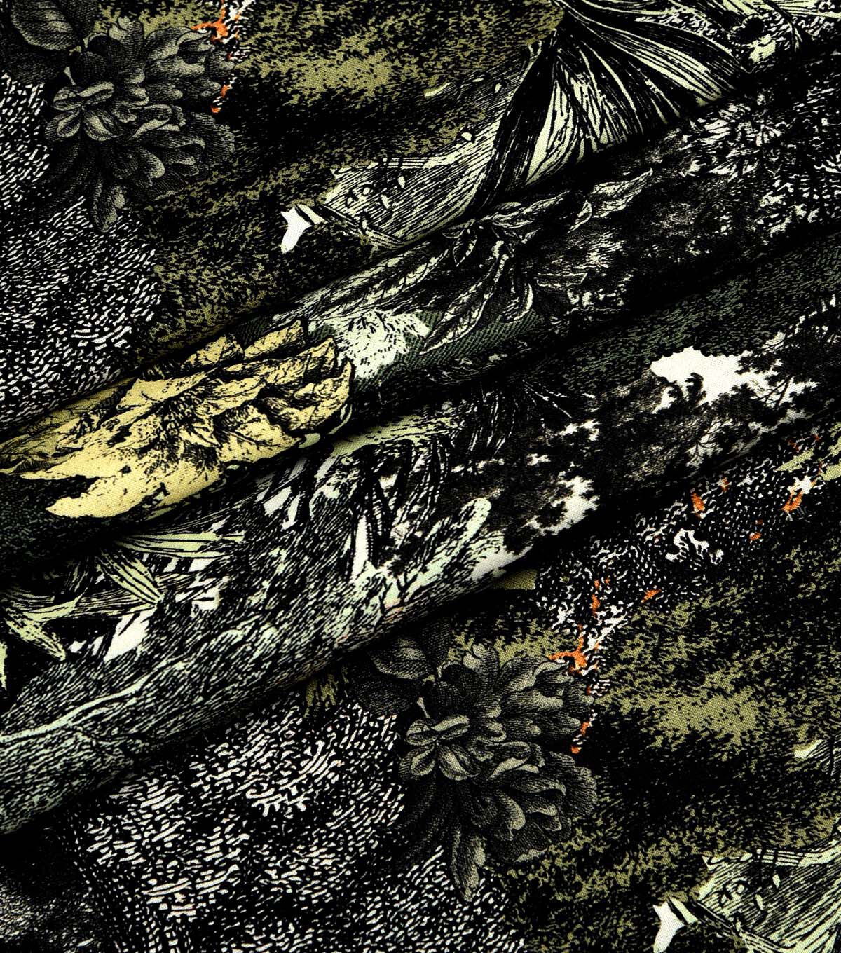 Black Sketched Premium Cotton Fabric