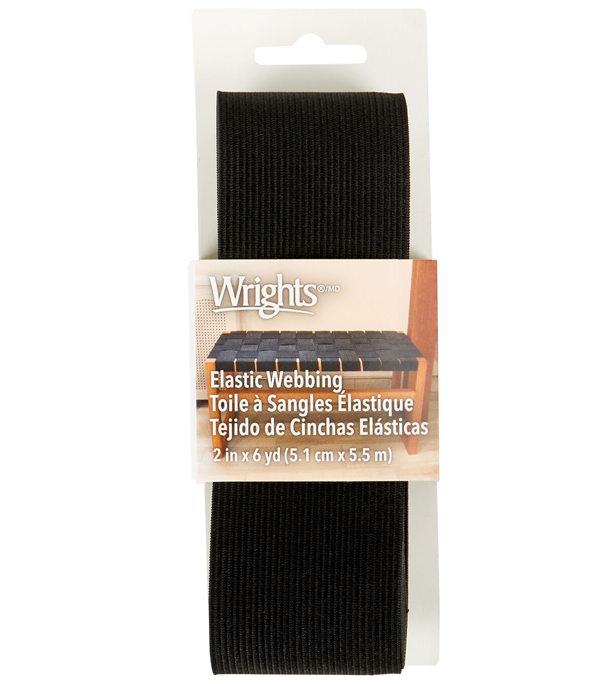 The Wrights Elastic Webbing - Black will come in handy to complete your upholstery projects. This pack contains 6 yards of elastic webbing sporting a black shade. You can also use it when making tote bags or luggage racks and basic craft projects. It is a stronger and more durable alternative to rubber webbing.