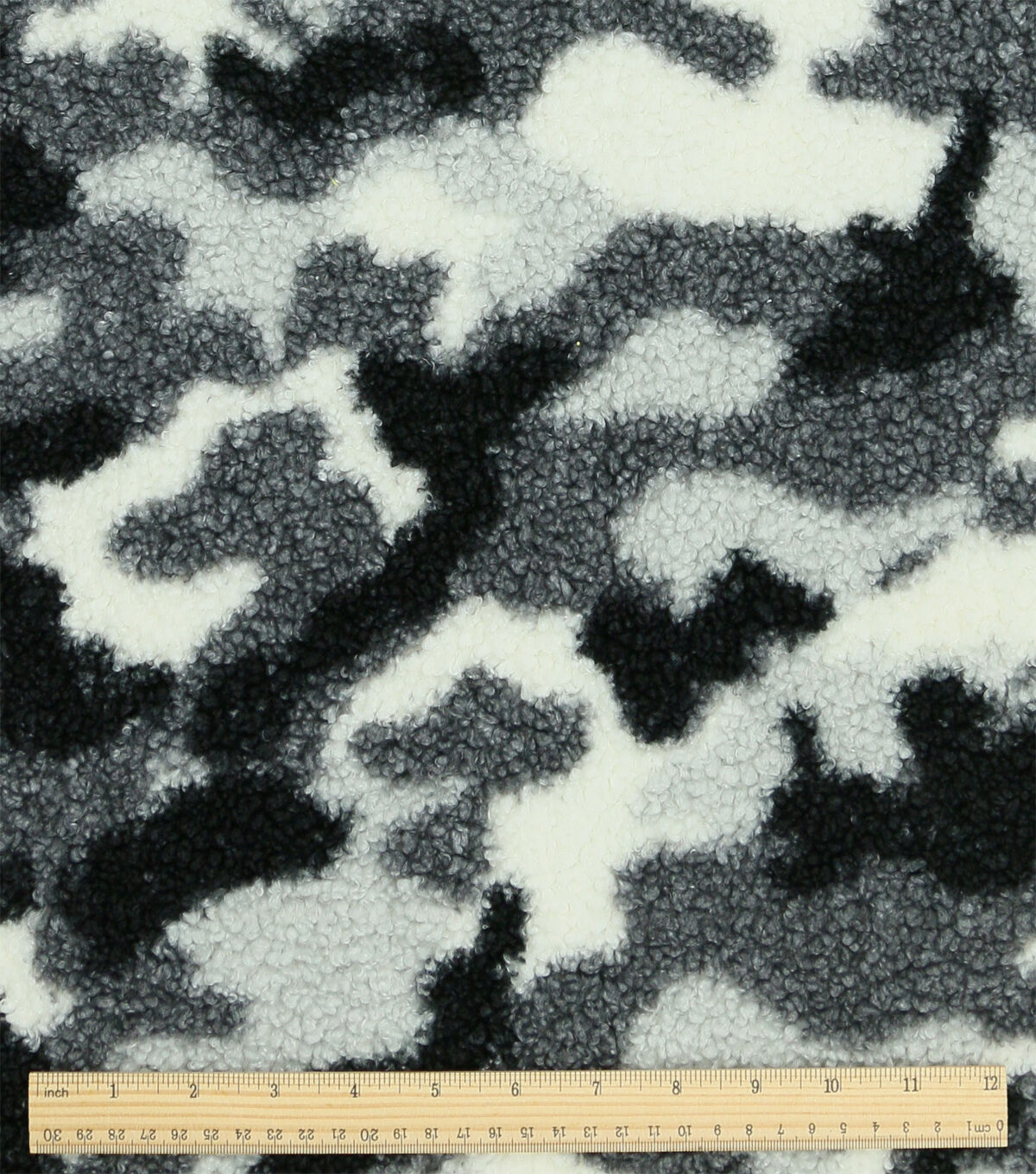 Black & White Camo Printed Teddy Fur Sherpa Fabric