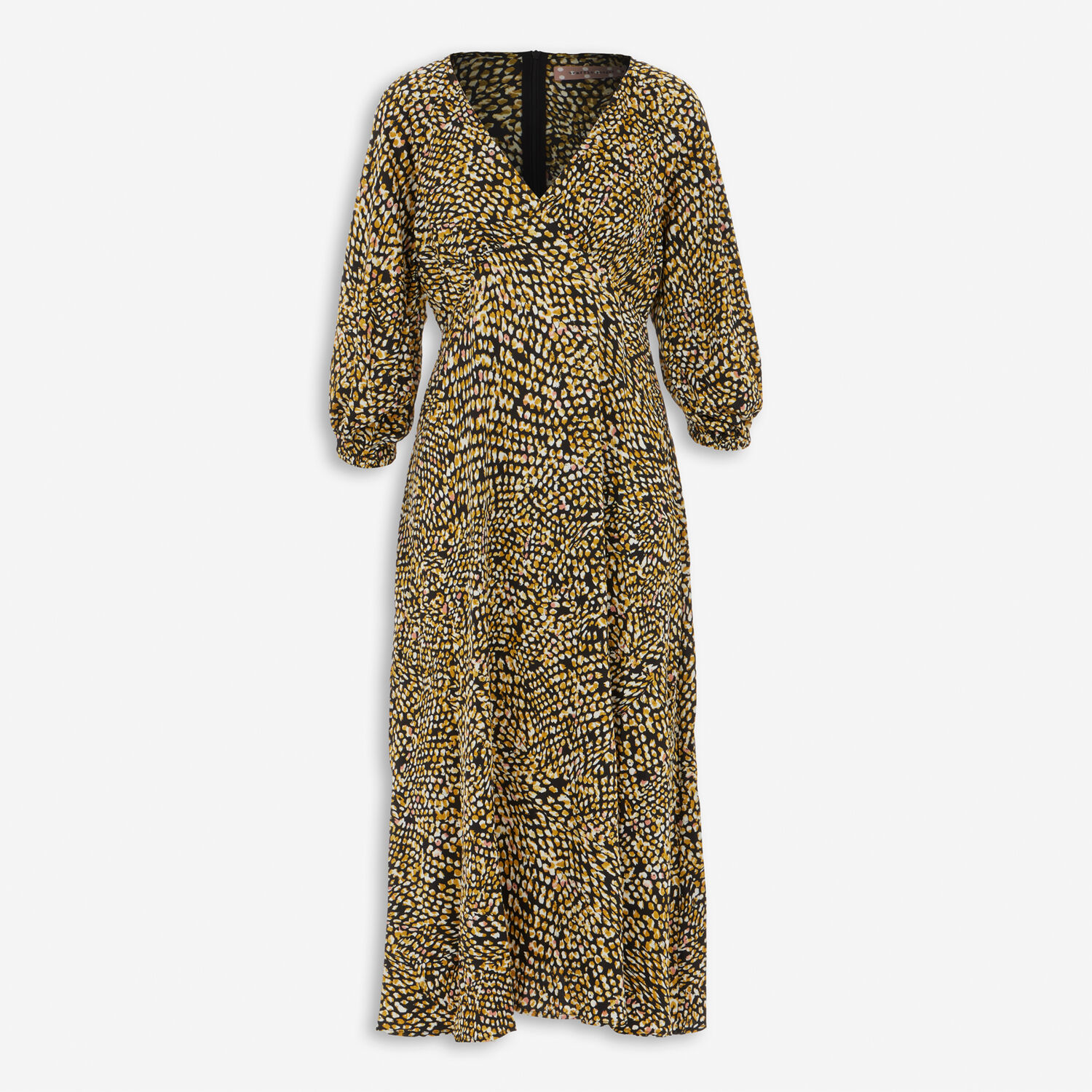 • Black & Yellow Pattern Midi Dress
