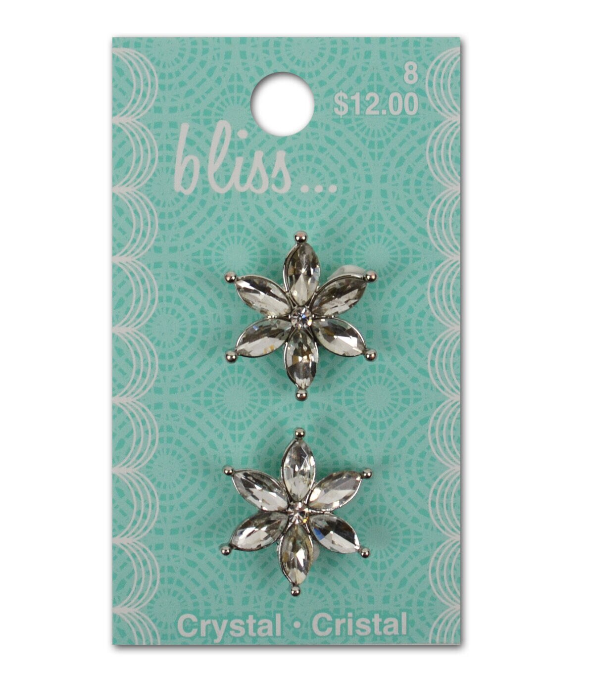 Add a bit of glam to your DIY apparel with the Bliss Crystal Petals Buttons. This pack includes two flower-shaped buttons that are studded with crystals. They can be sewn or glued. Accessories in this collection are designed to add sophistication to attire for special occasions like weddings, parties, proms and more.