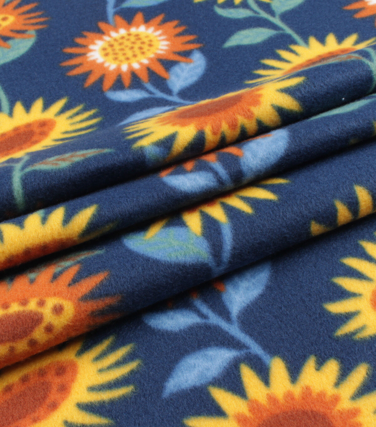 • Blizzard Fleece Sunflowers On Navy Fabric