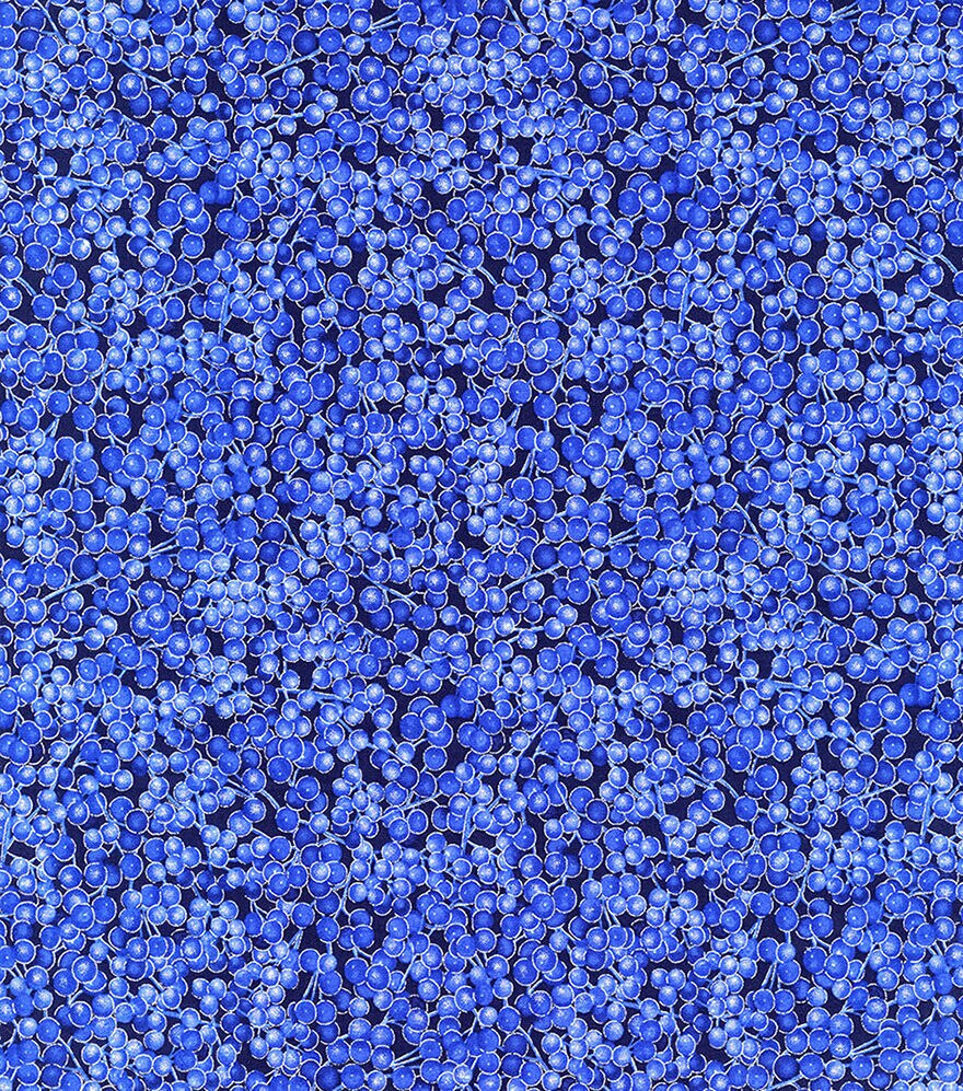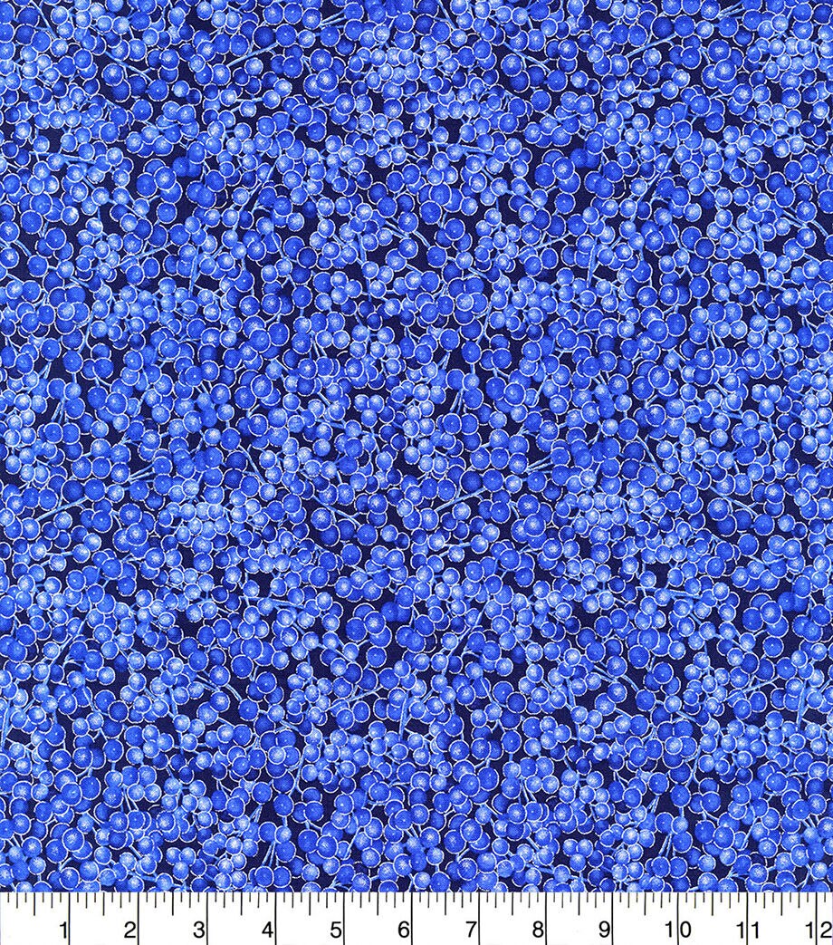 Get Festive with Blue Berries Christmas Metallic Cotton Fabric