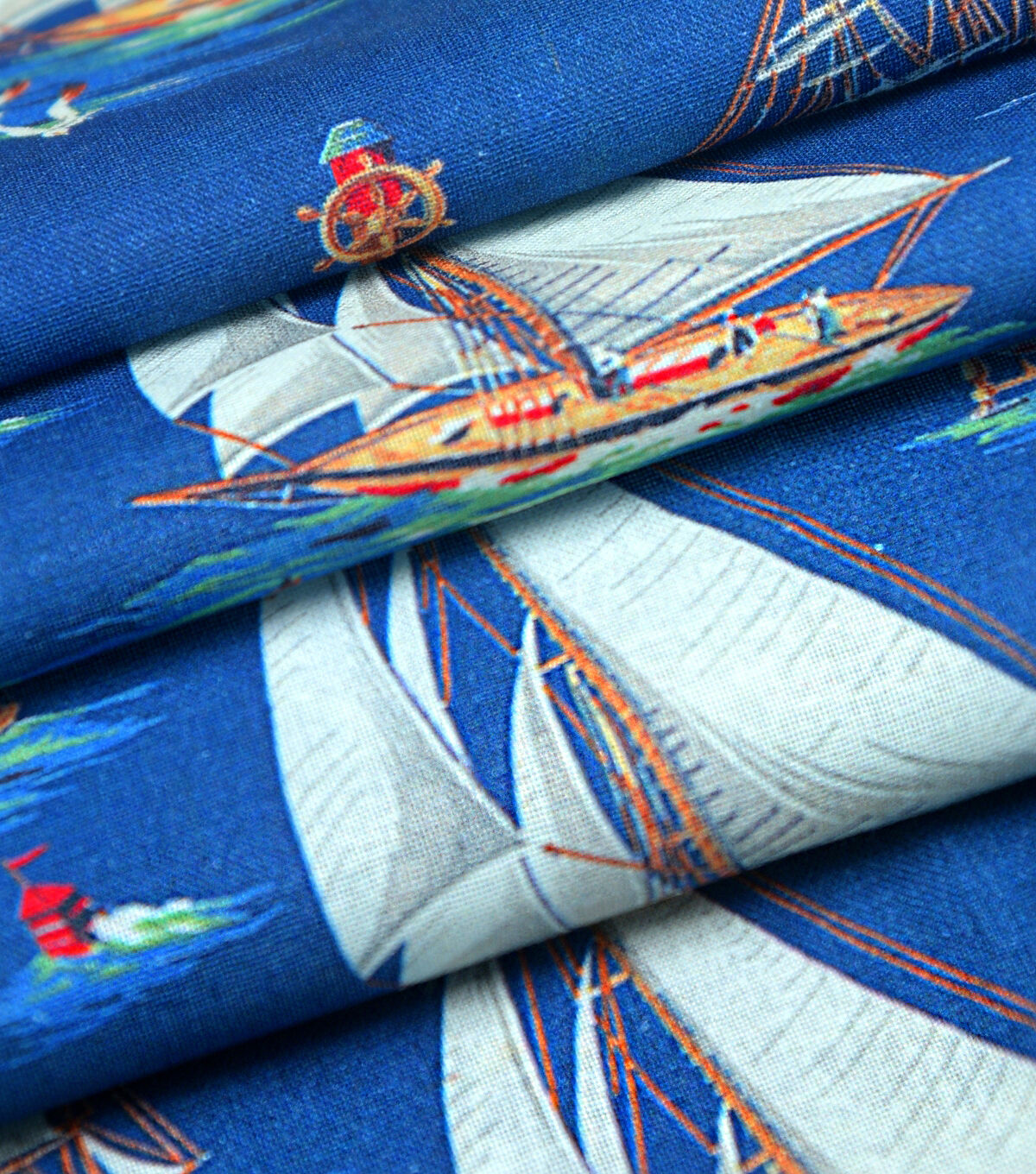 Blue Boats On The Water Novelty Cotton Fabric