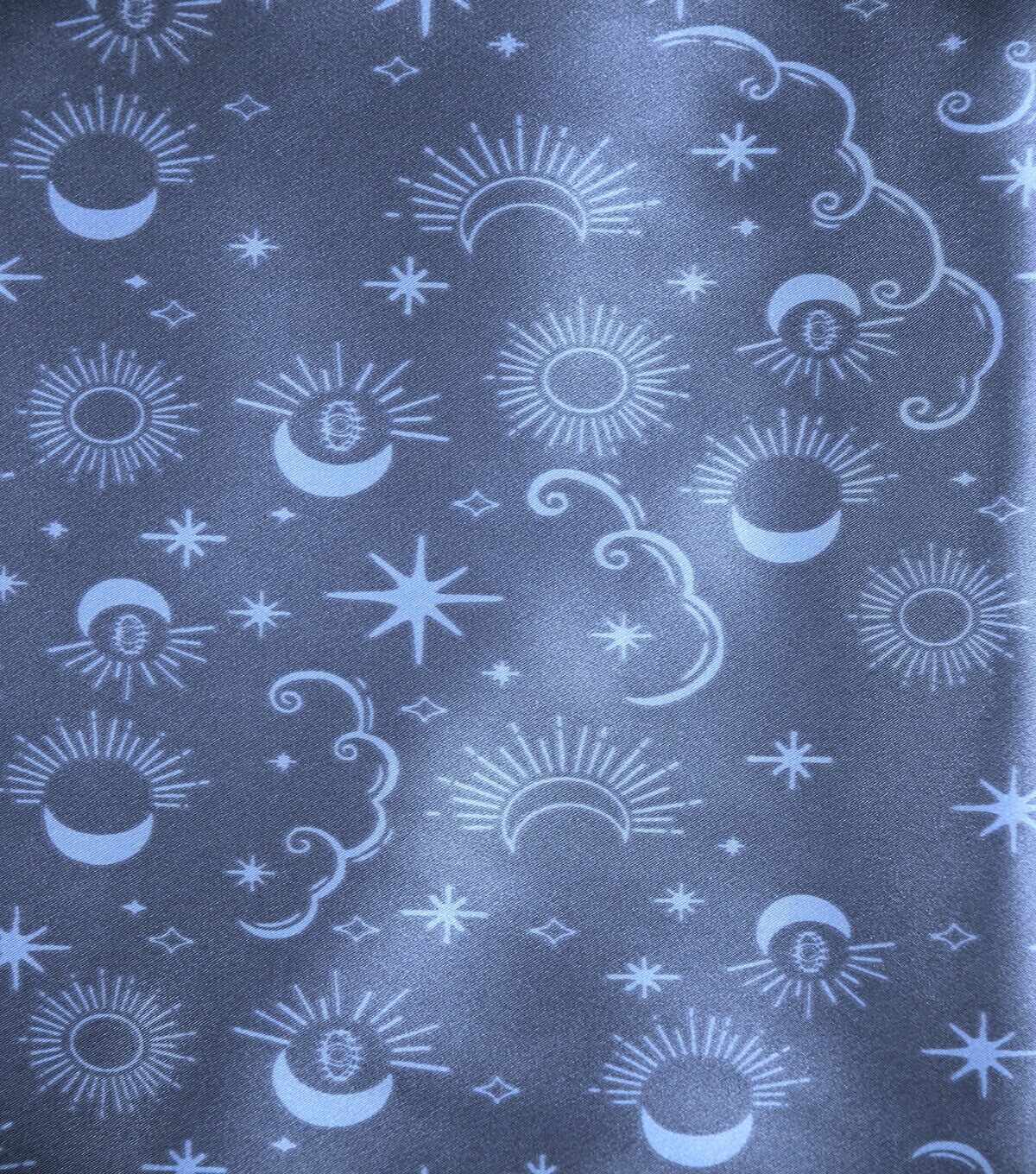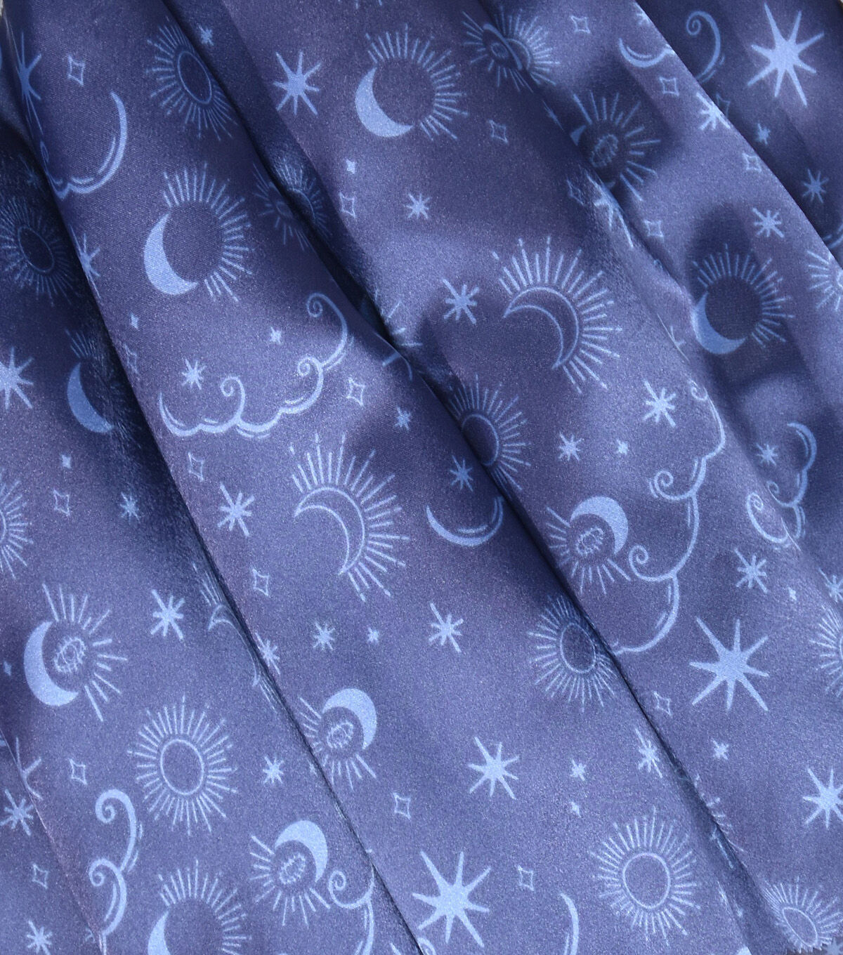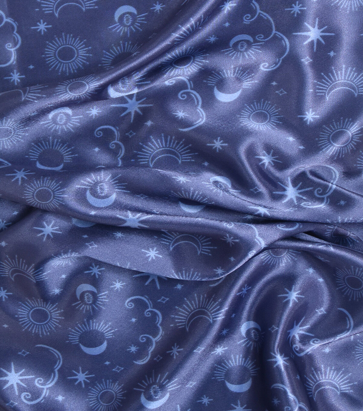 • Blue Celestial Print Shiny Charmeuse Fabric