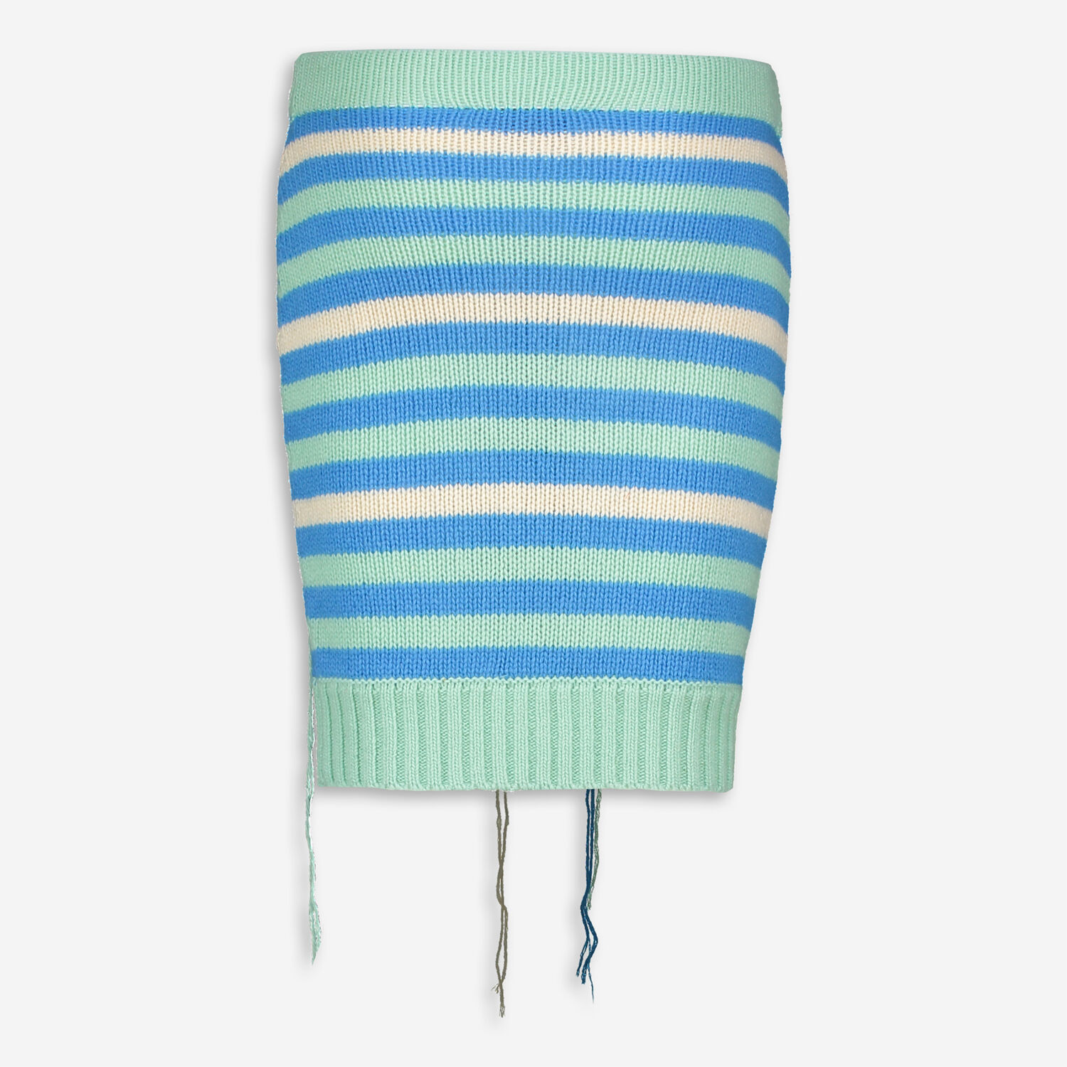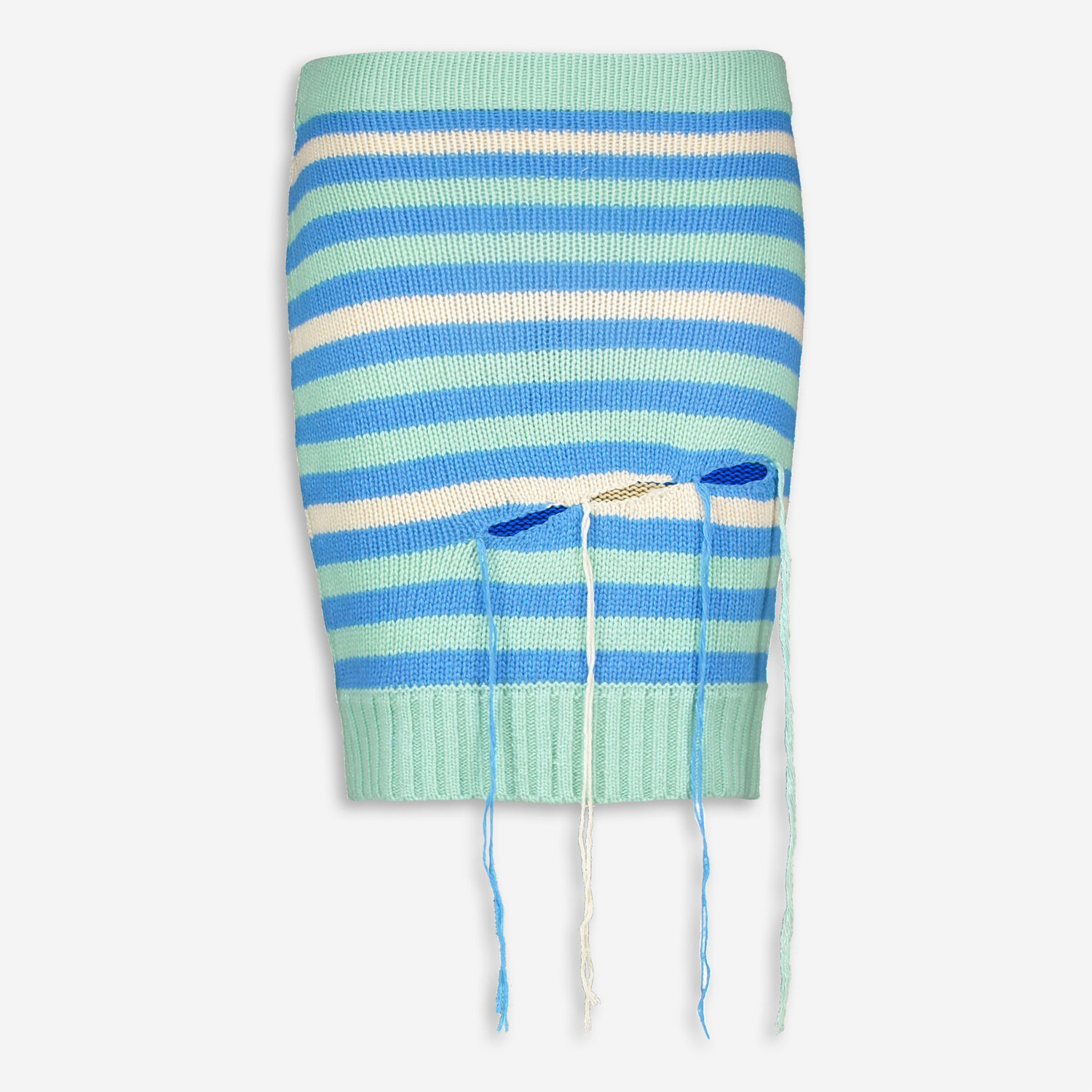• Blue & Cream Wool Slash Knit Mini Skirt