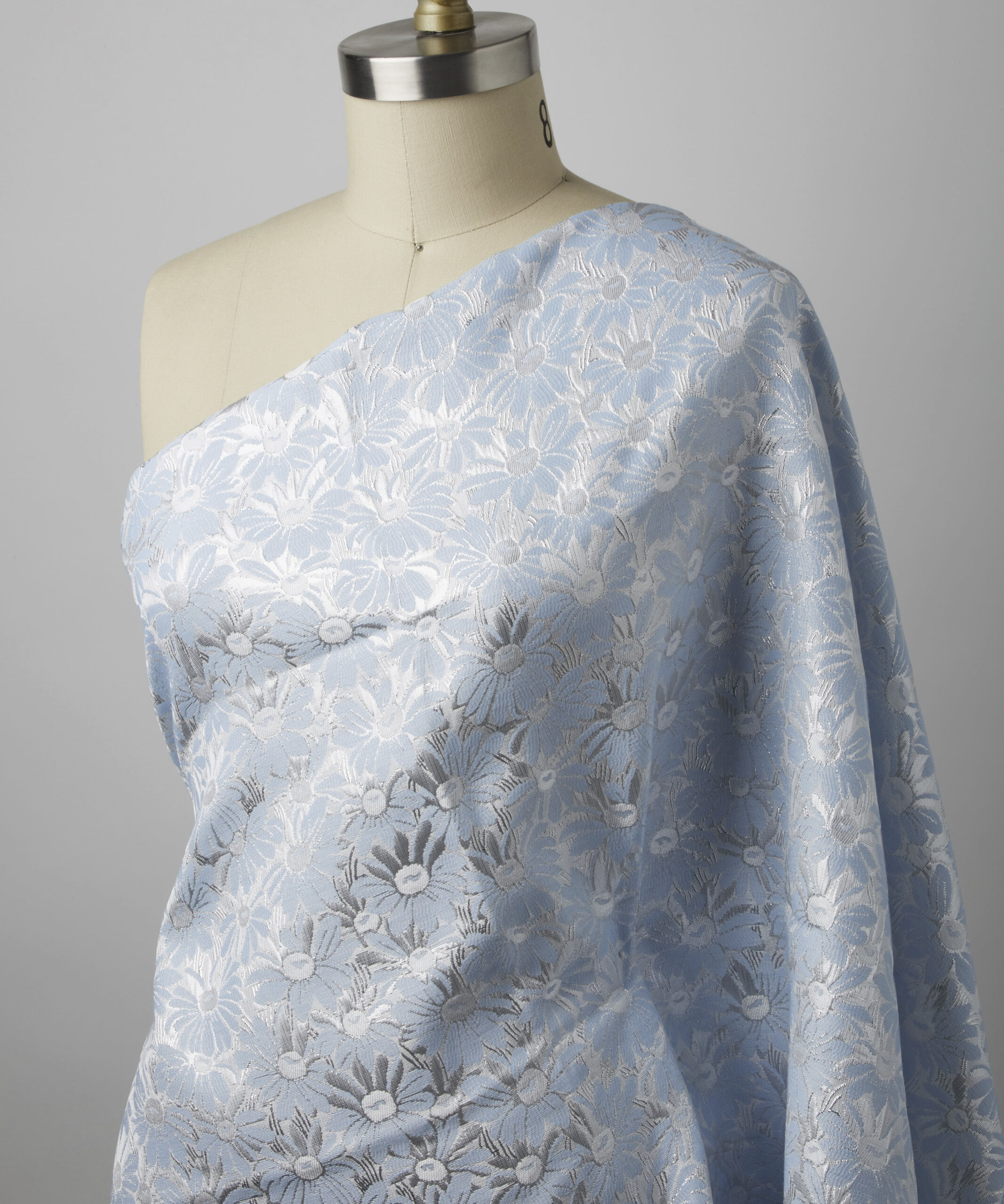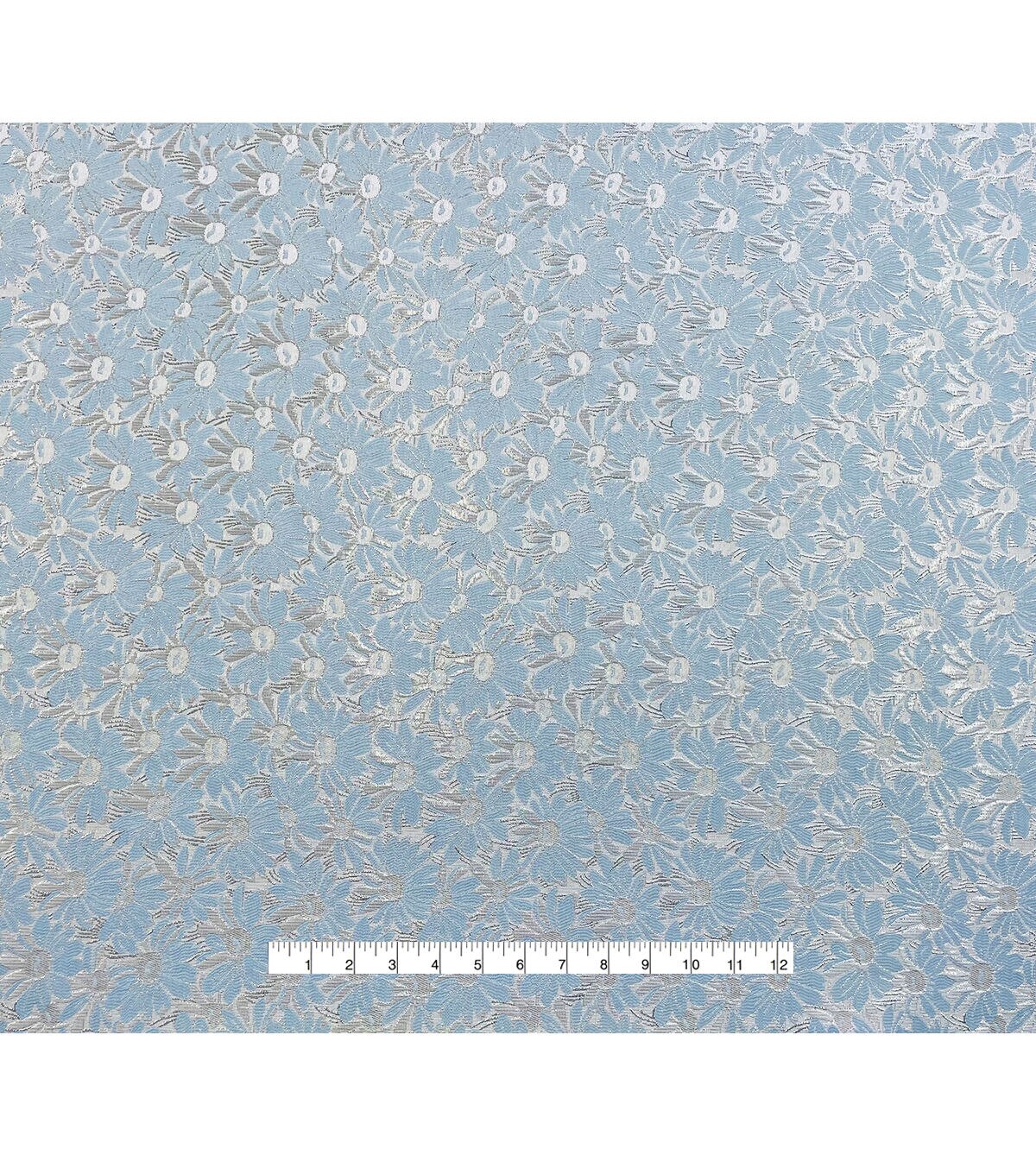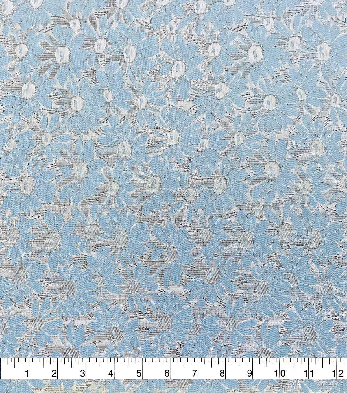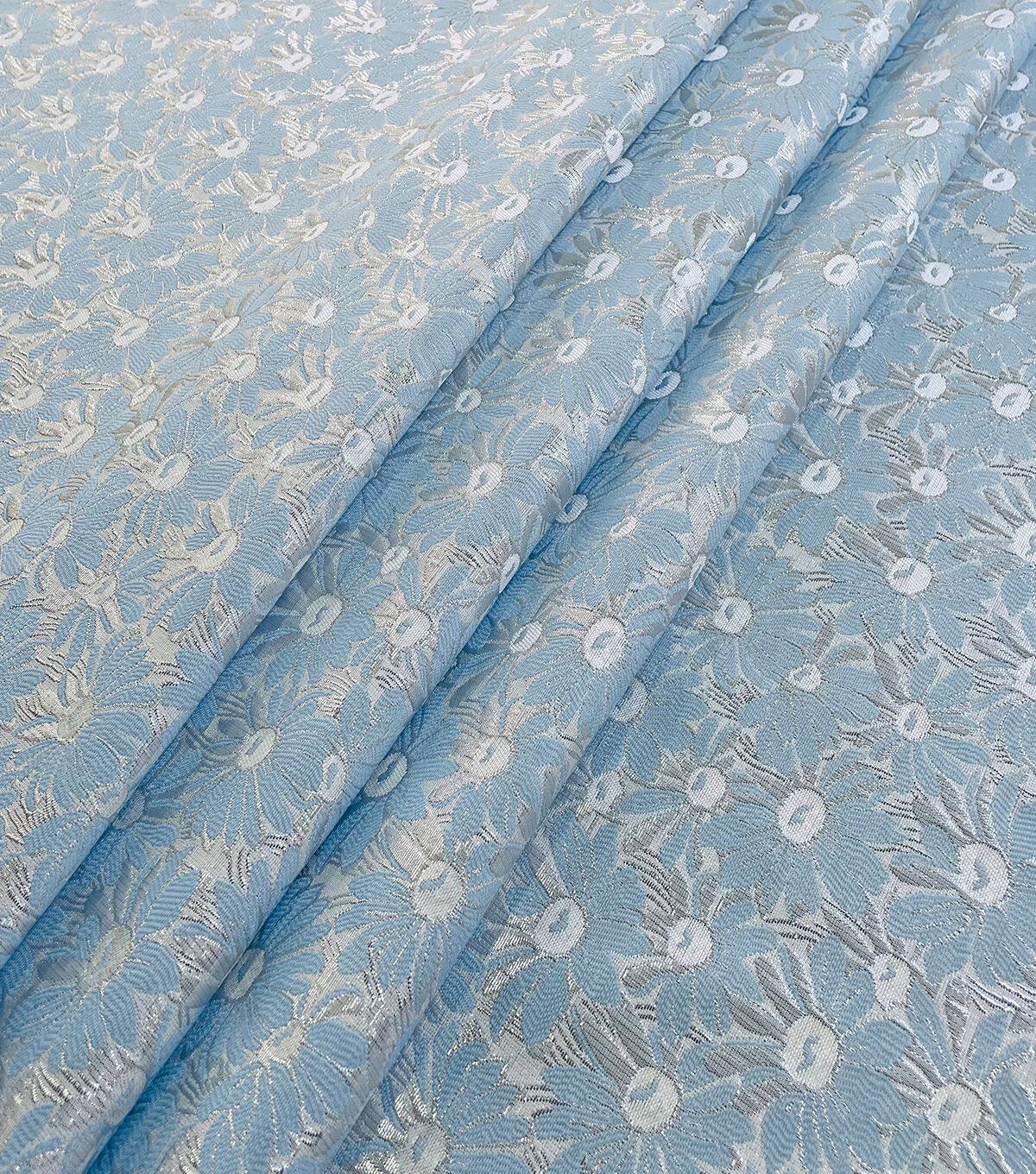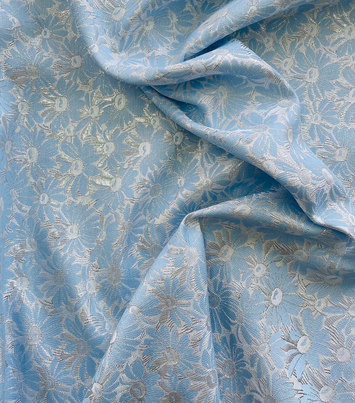 Sew sweet floral and light colors for your wardrobe with our blue daisy brocade. This polyester fabric is full of vintage spring vibes, plus packs a durability to outlast any occasion. It's also moisture-wicking and breathable for long-lasting comfort as apparel like tops and more. And with the metallic shimmer as part of the embroidery, you'll find a style that's nice and unique just for you.