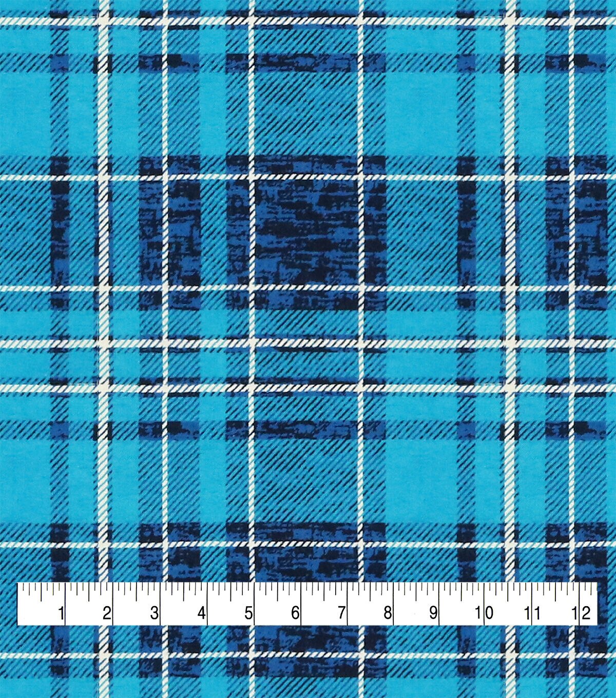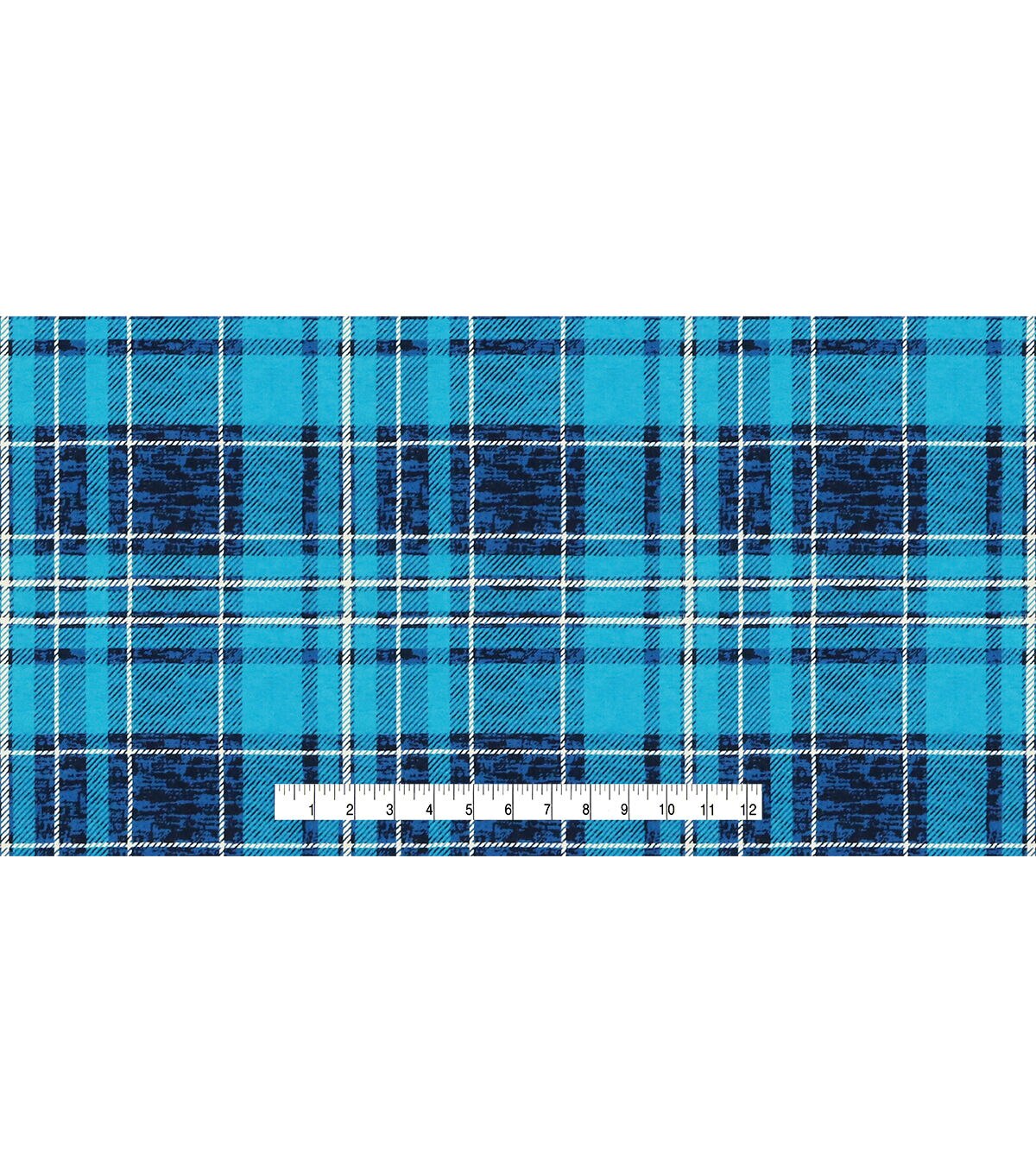 Blue Distressed Plaid Super Snuggle Flannel Fabric