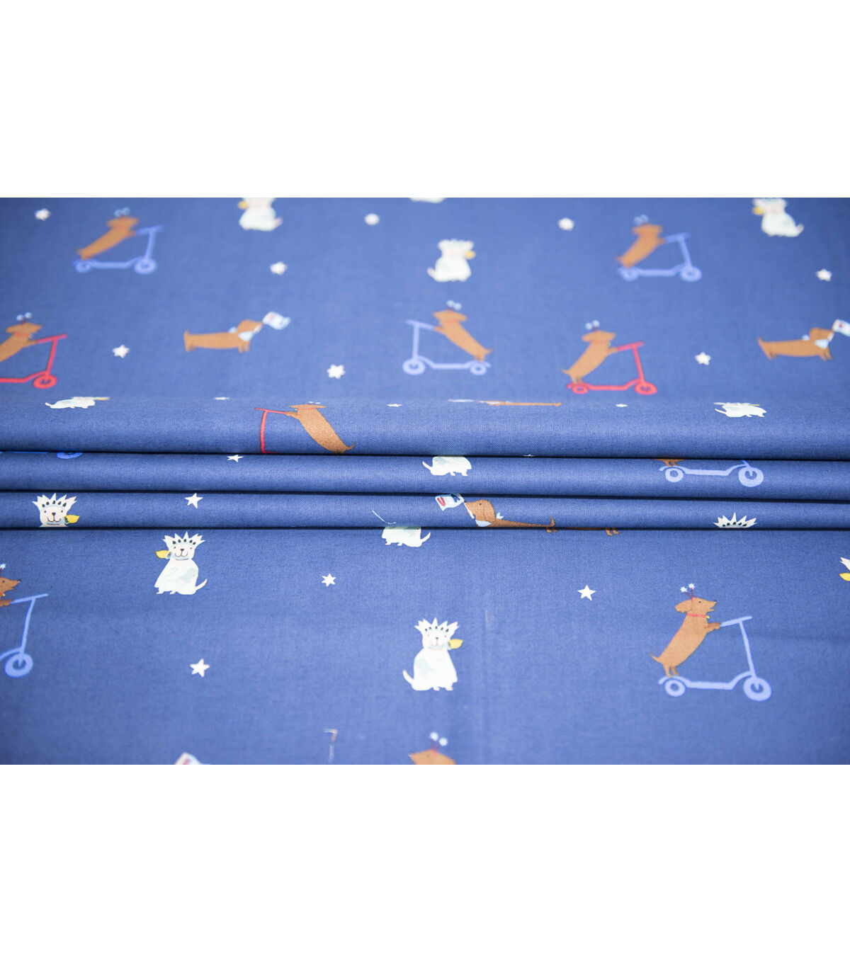• Blue Doggies On Scooters Patriotic Cotton Fabric by POP!