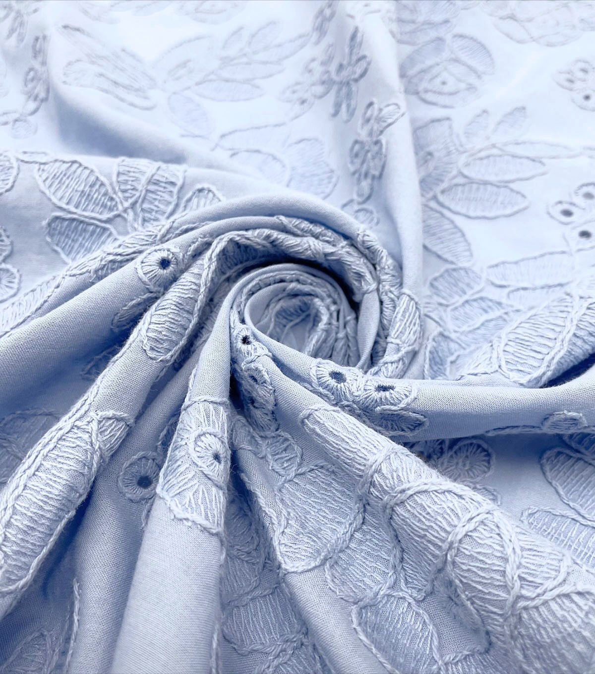 Beautiful Blue Floral Eyelet Cotton Fabric for Your Next Project