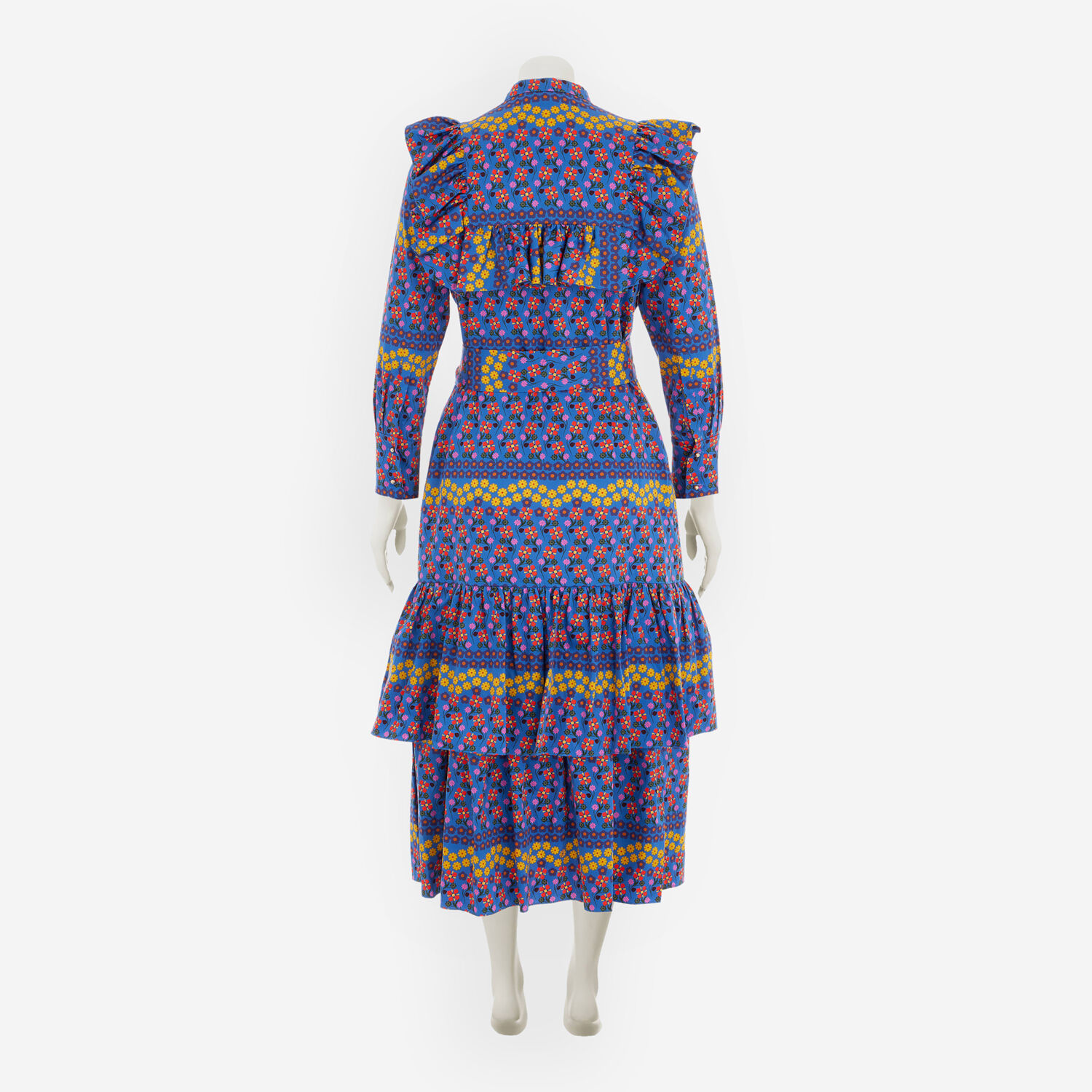 Blue Floral Frill Bib Midi Dress