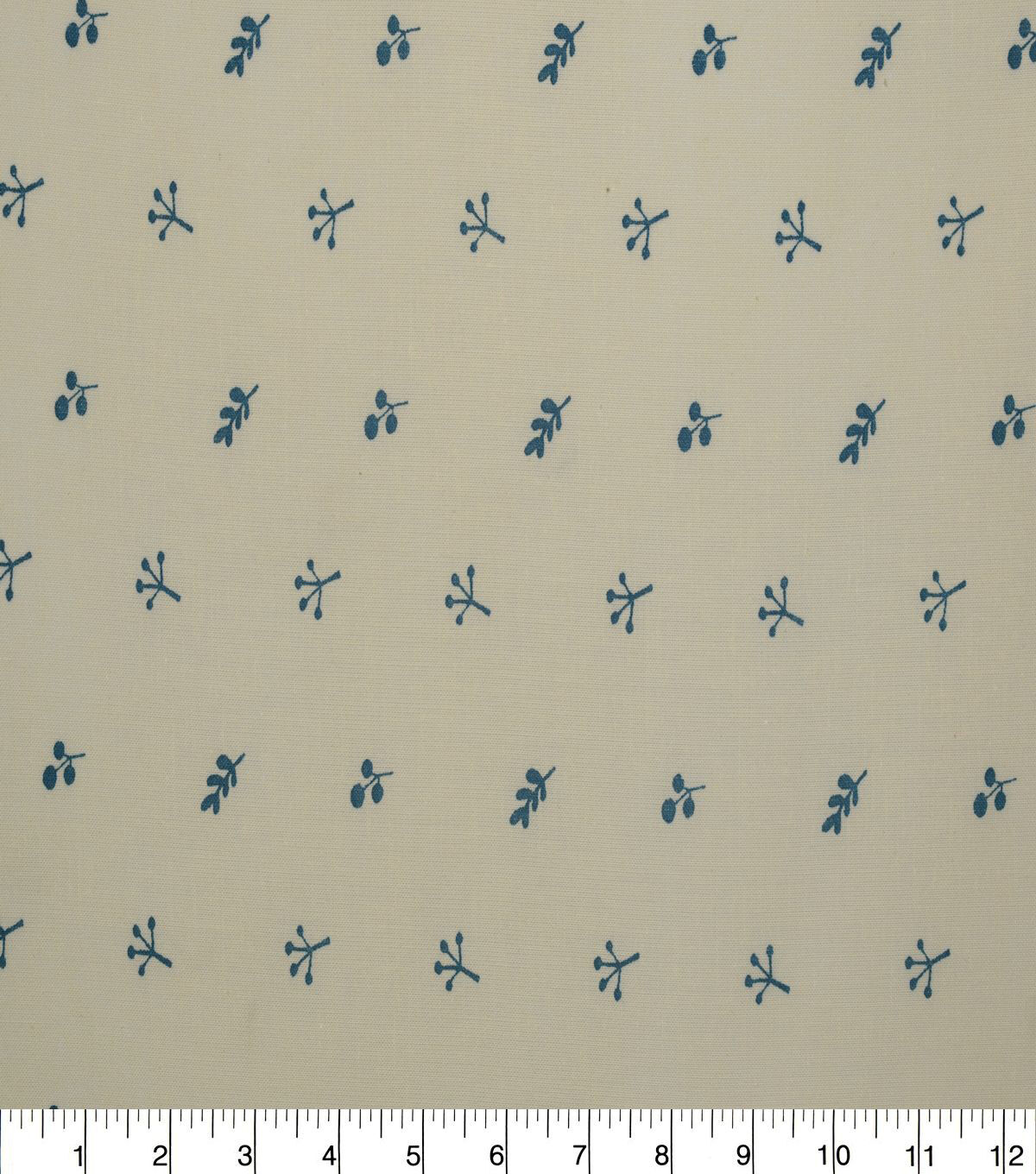 Blue Floral & Leaves on Tan Quilt Cotton Fabric by Quilter's Showcase
