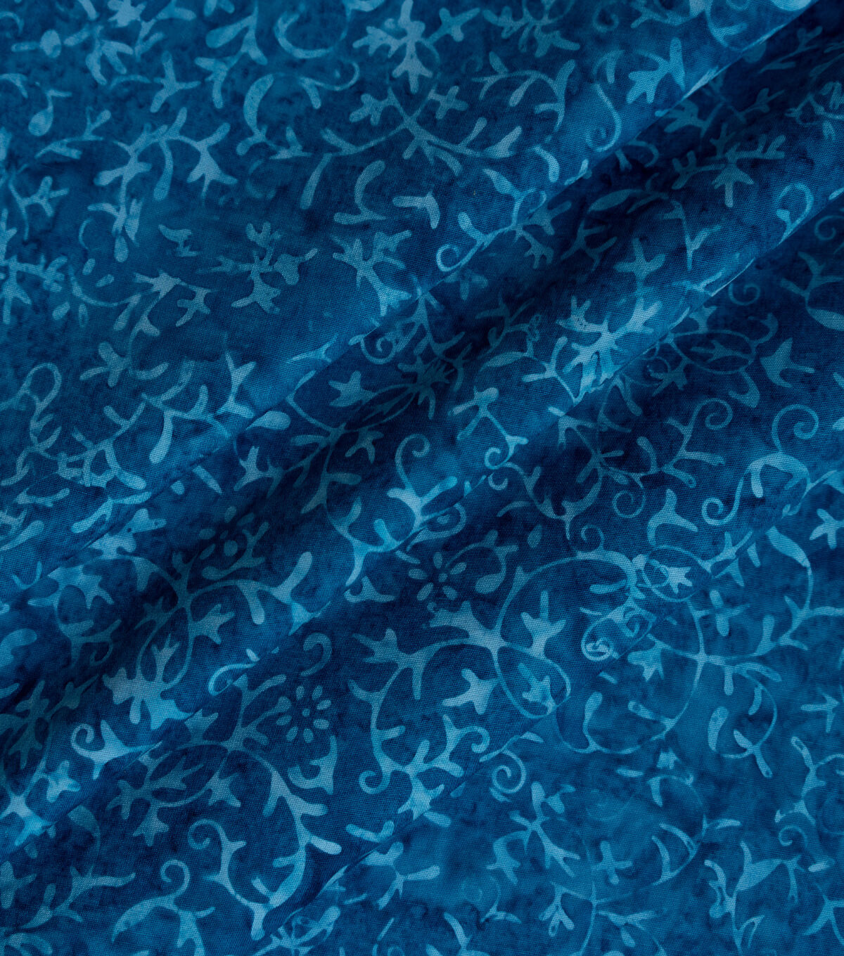 Blue Floral Vine Batik Cotton Fabric