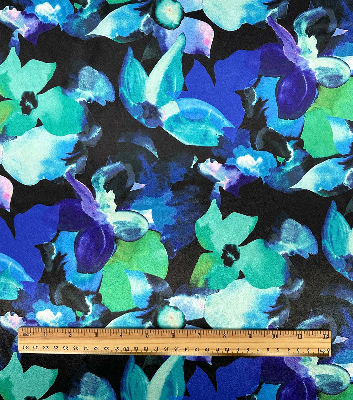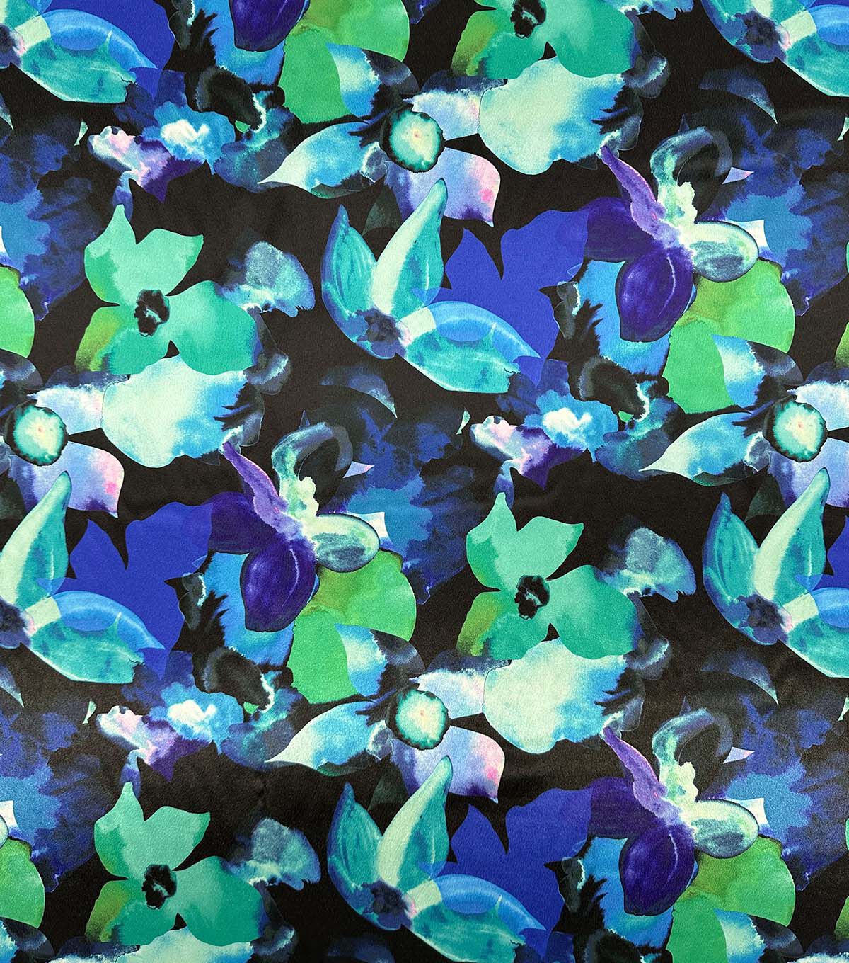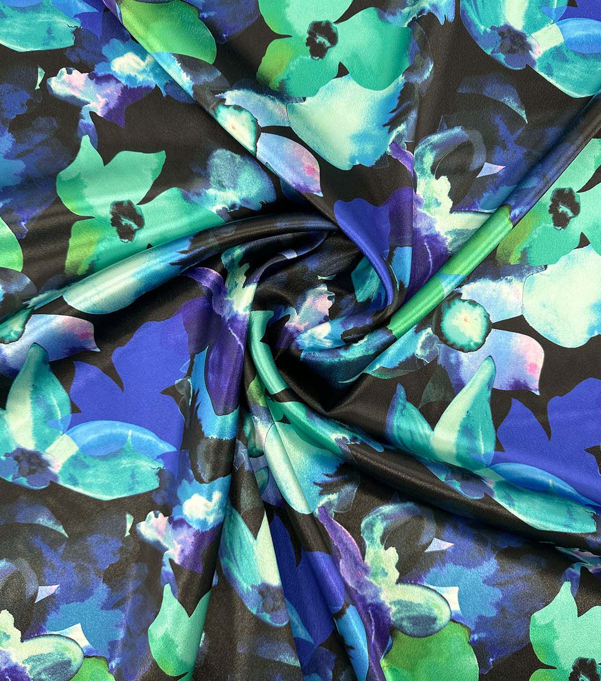 Experience the Beauty of Blue & Green Electric Floral Watercolor Silky Charmeuse Fabric
