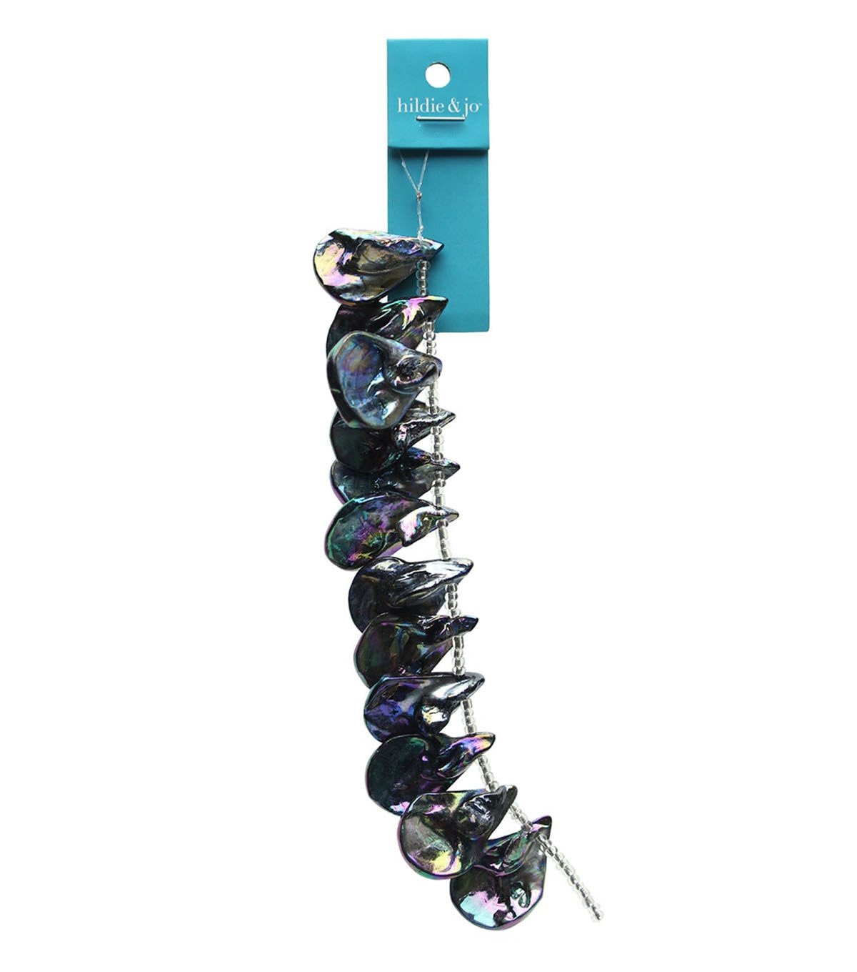 Create statement pieces of jewelry using the hildie & jo Teardrop Shell Strung Beads - Blue Iris. This pack contains beads that are carved from natural shells with a light polished finish on the edges. These beads are coated in a vacuum chamber with a gasified blue metallic iris. With a ripple-like surface, these beads will add a unique touch to your home decor, DIY and beading projects.