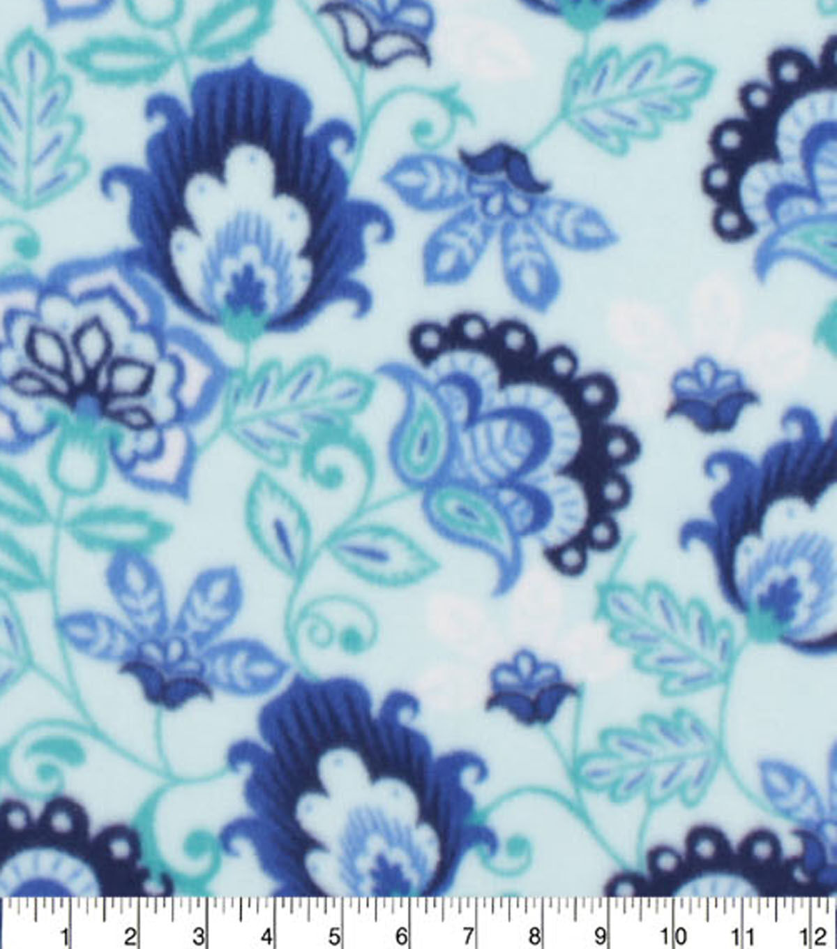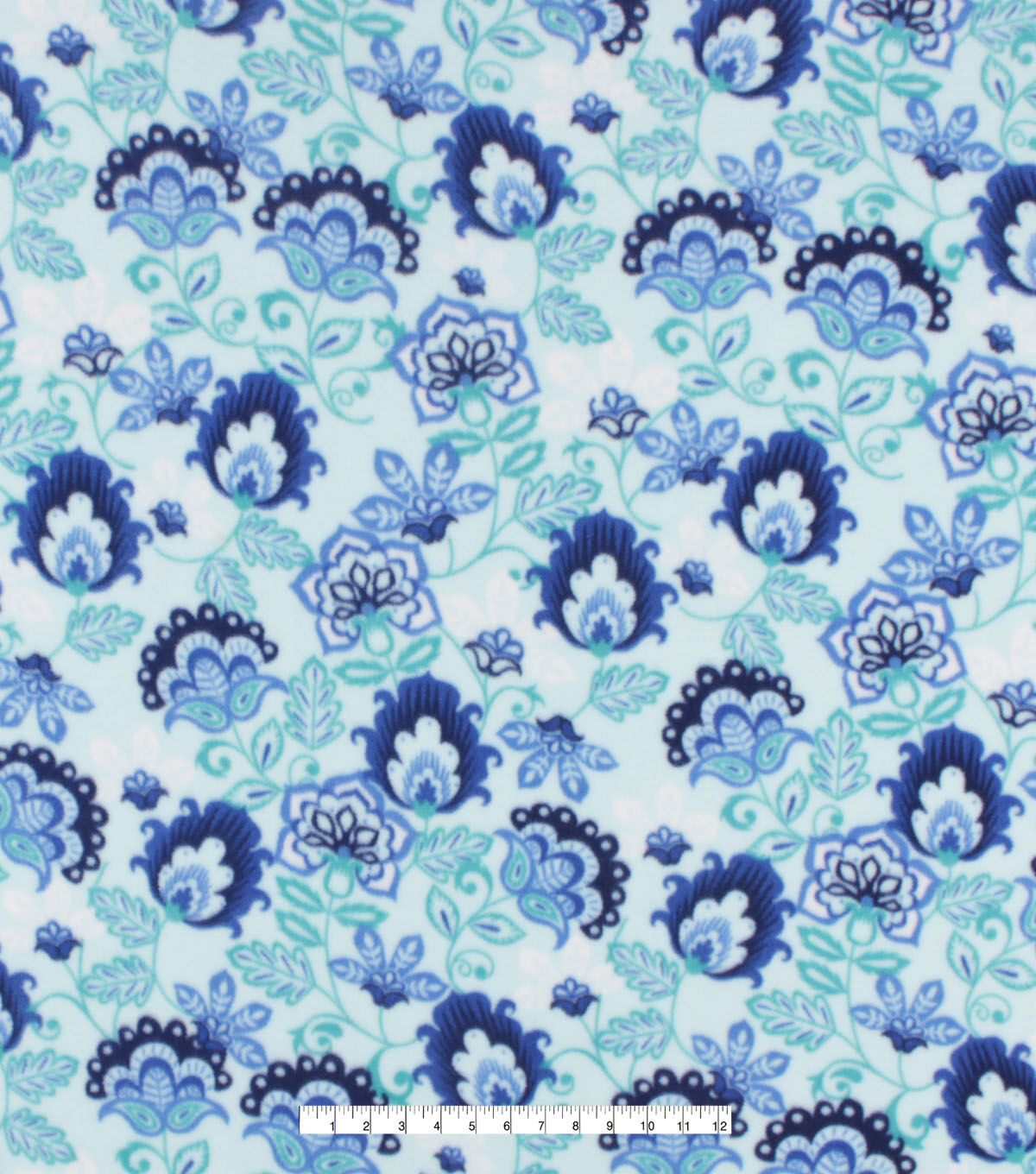 Blue Jacobean Floral Anti Pill Fleece Fabric