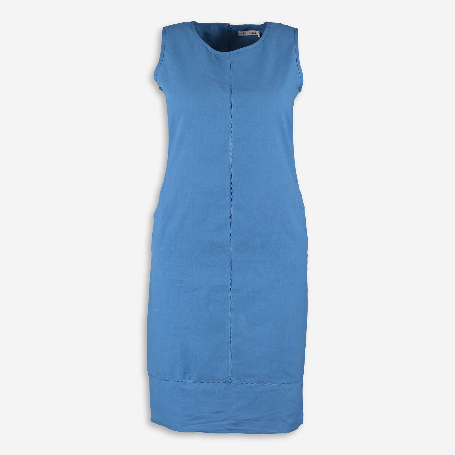 • Blue Linen Midi Dress