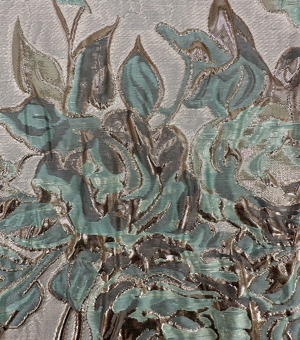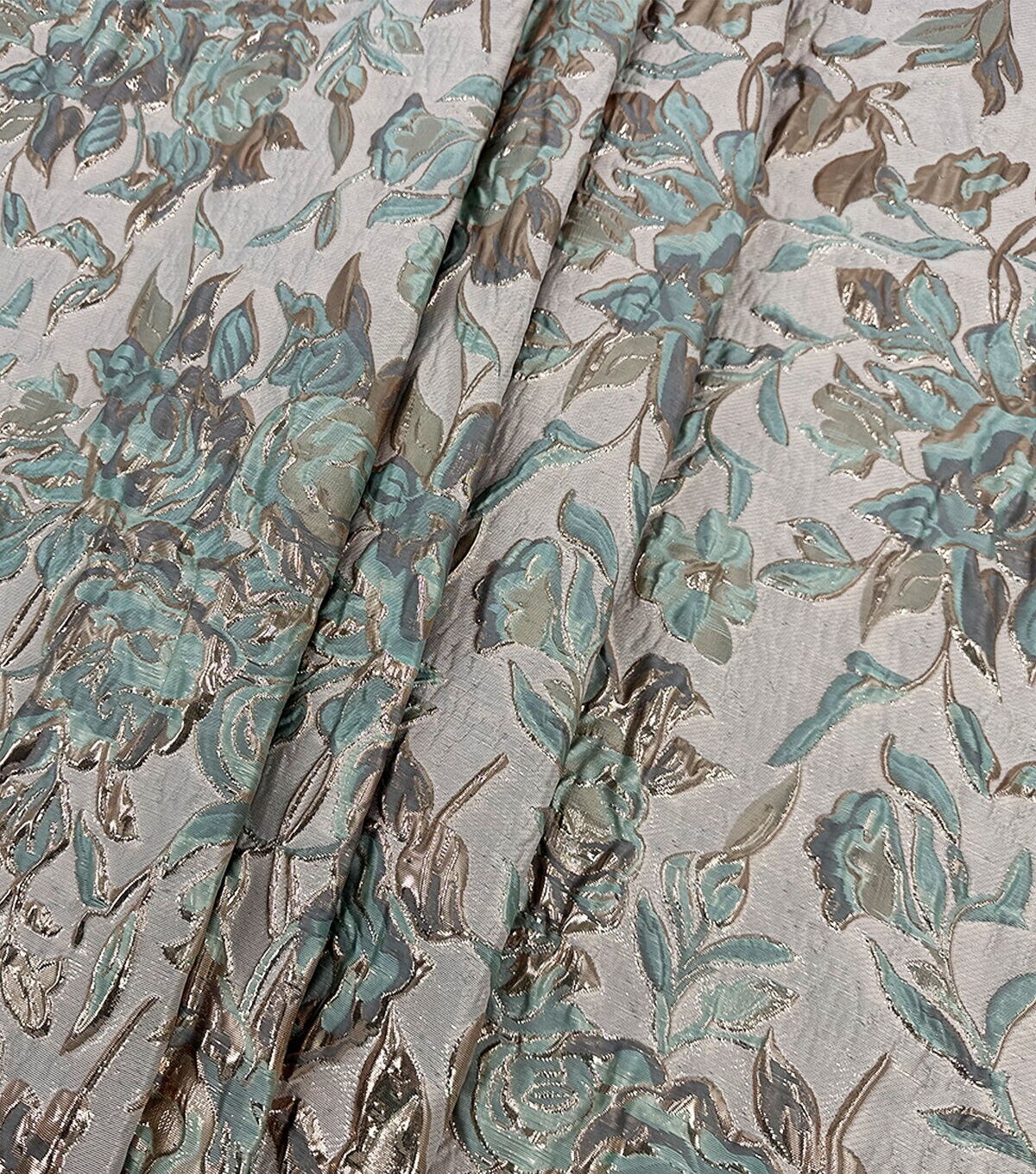 • Blue Metallic Floral Jacquard Knit Fabric