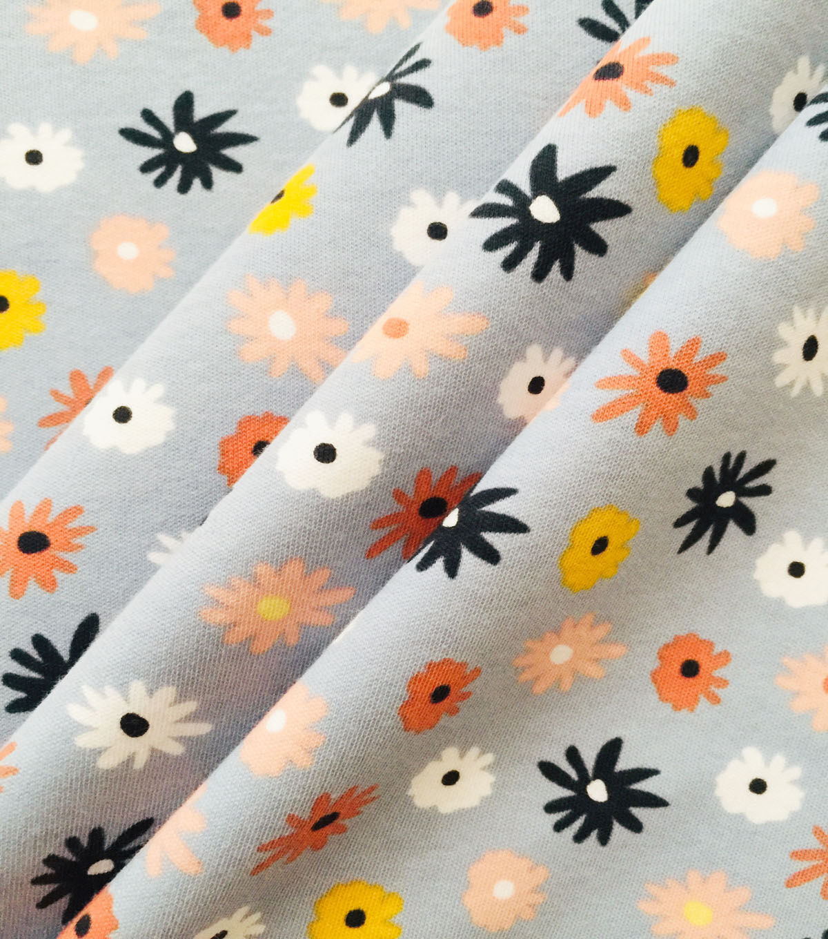 The power of cotton is an almighty force for kids attire. Our cotton spandex interlock is a thicker fabric that's durable and naturally comfortable. Plus with breathability and slight stretch, children's tops and dresses are free-moving during play time. Choose from various designs like these brightly colored daisies, and you have a loving sewing project for awesome practicality and personality.
