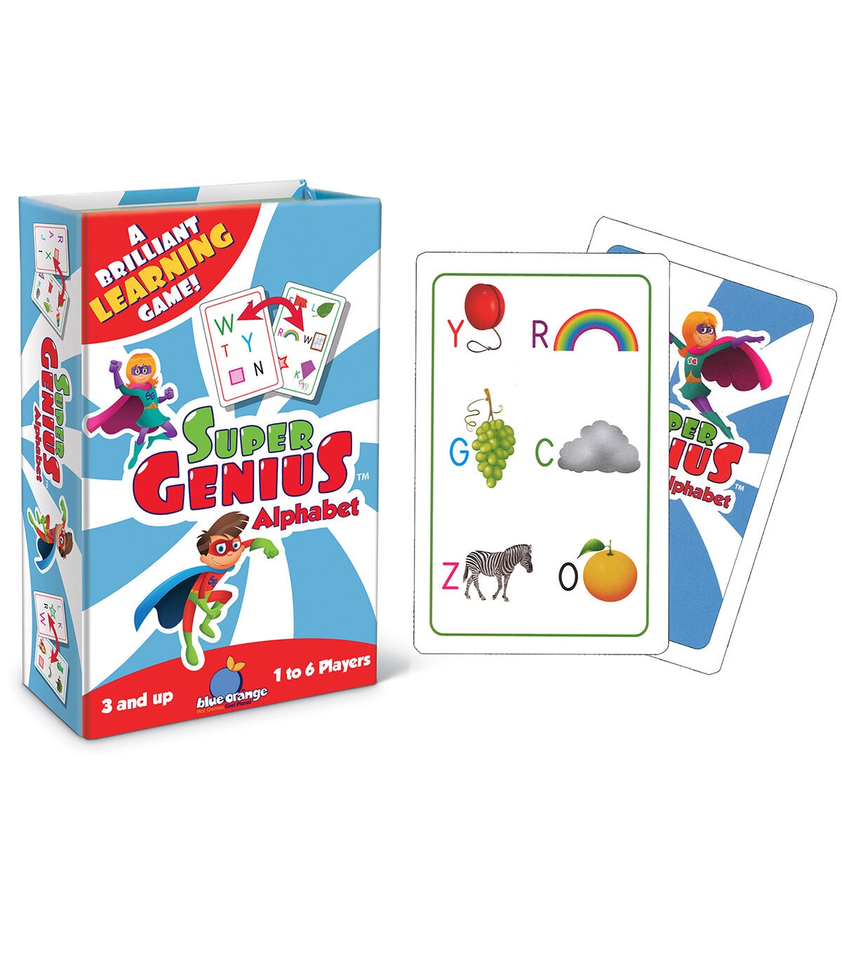 This matching game will propel your child into ABC fun as they sound out the letters while matching them with familiar and vibrant illustrations. Developed hand-in-hand with learning professionals, this Super Genius game was specifically created with early learners in mind. The concept is brilliant! There is always one -- and only one -- match between any two cards. Pick a cooperative rule or race to find the match. There are endless ways to learn… while having fun. Each game includes 62 cards and illustrated instructions. For 1-6 players, ages 3 and up. Play time: 15 minutes.