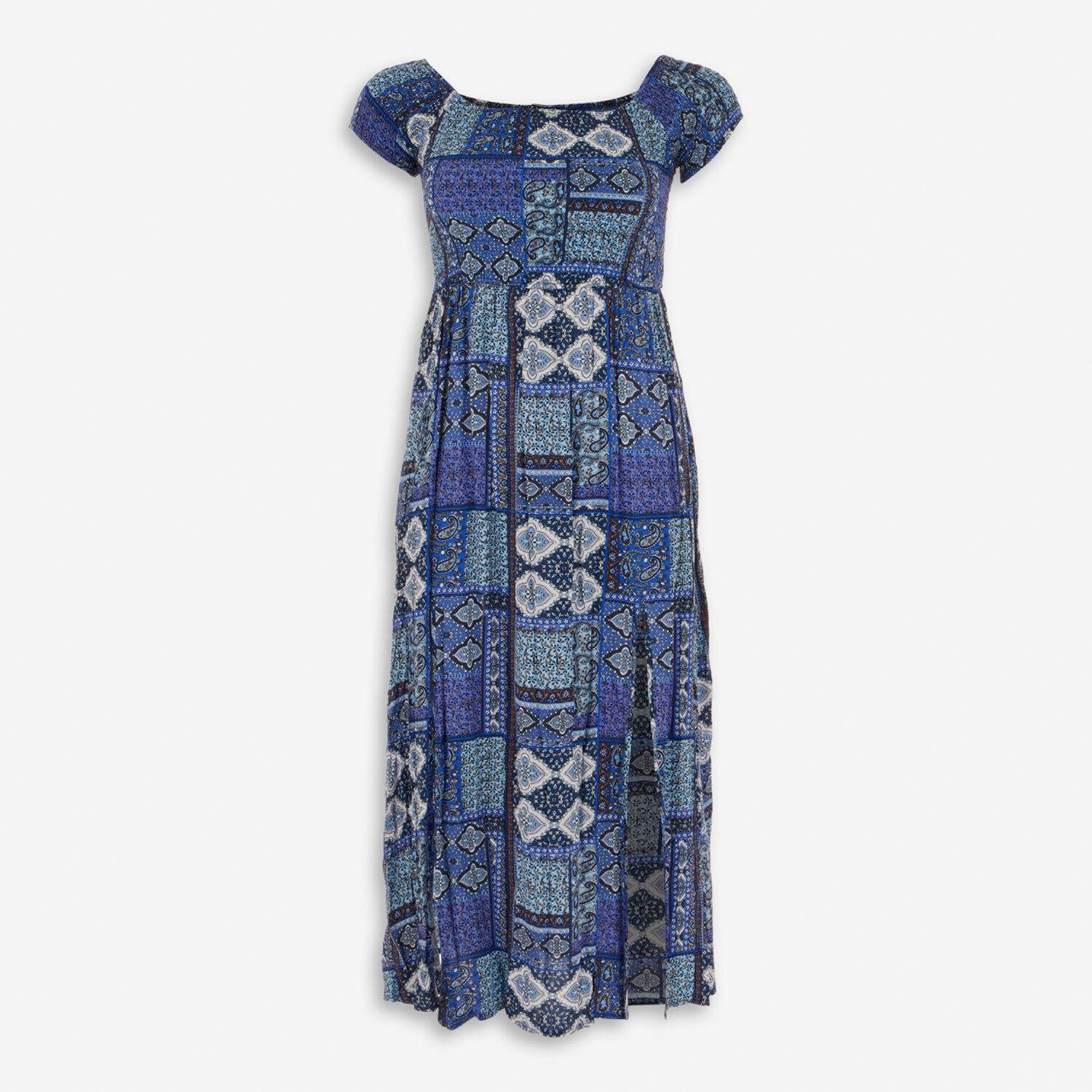 • Blue Paisley Shirred Midi Dress