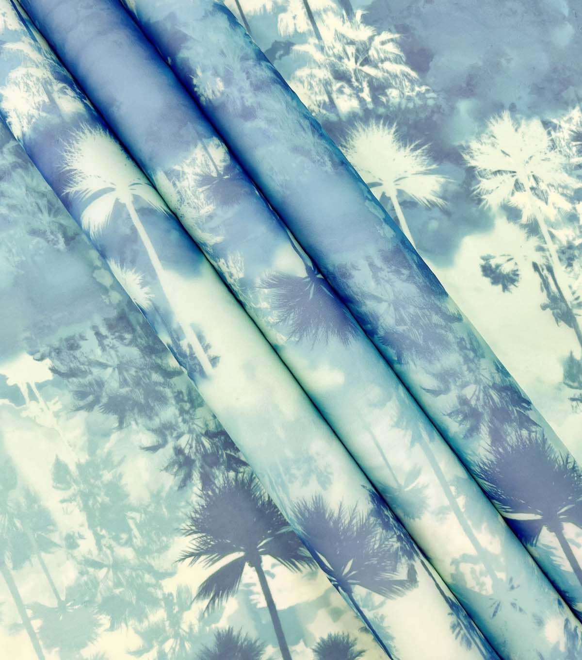 Get Ready for Summer with Blue Palm Trees Sheer Chiffon Silky Fabric