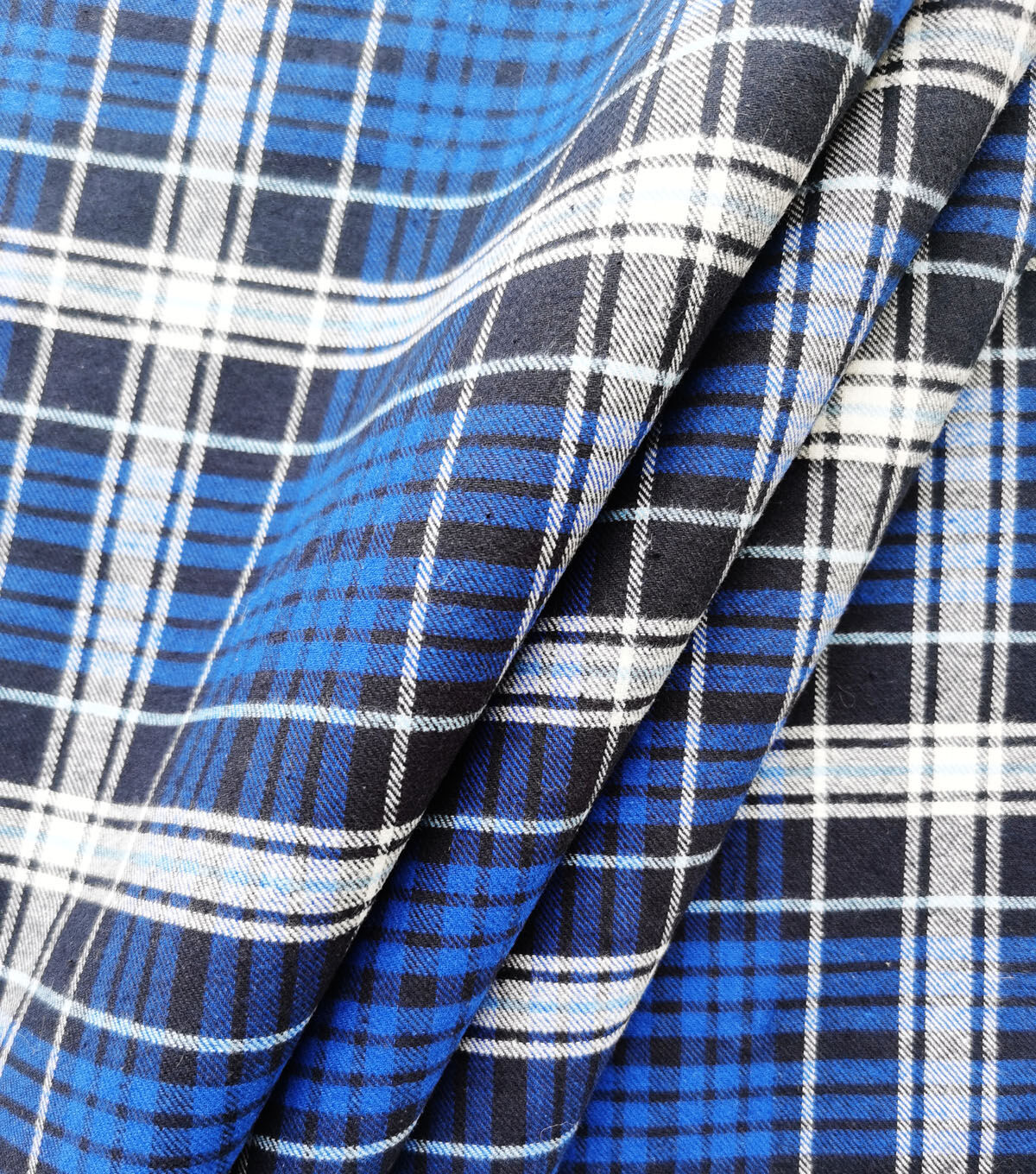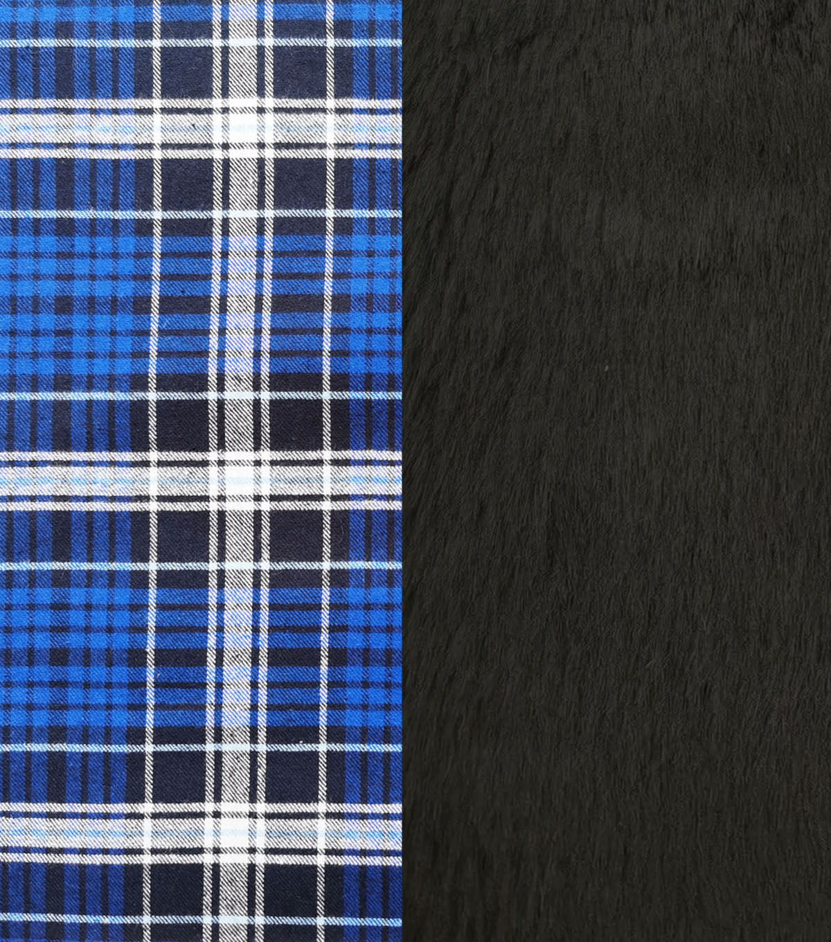• Blue Plaid Flannel Backed Faux Fur Fabric