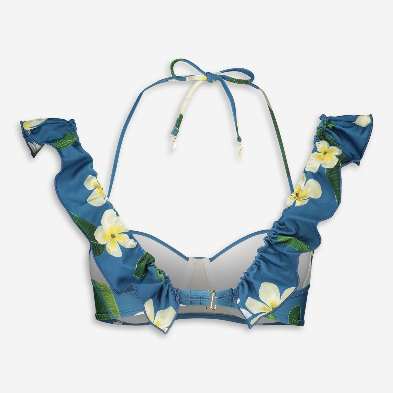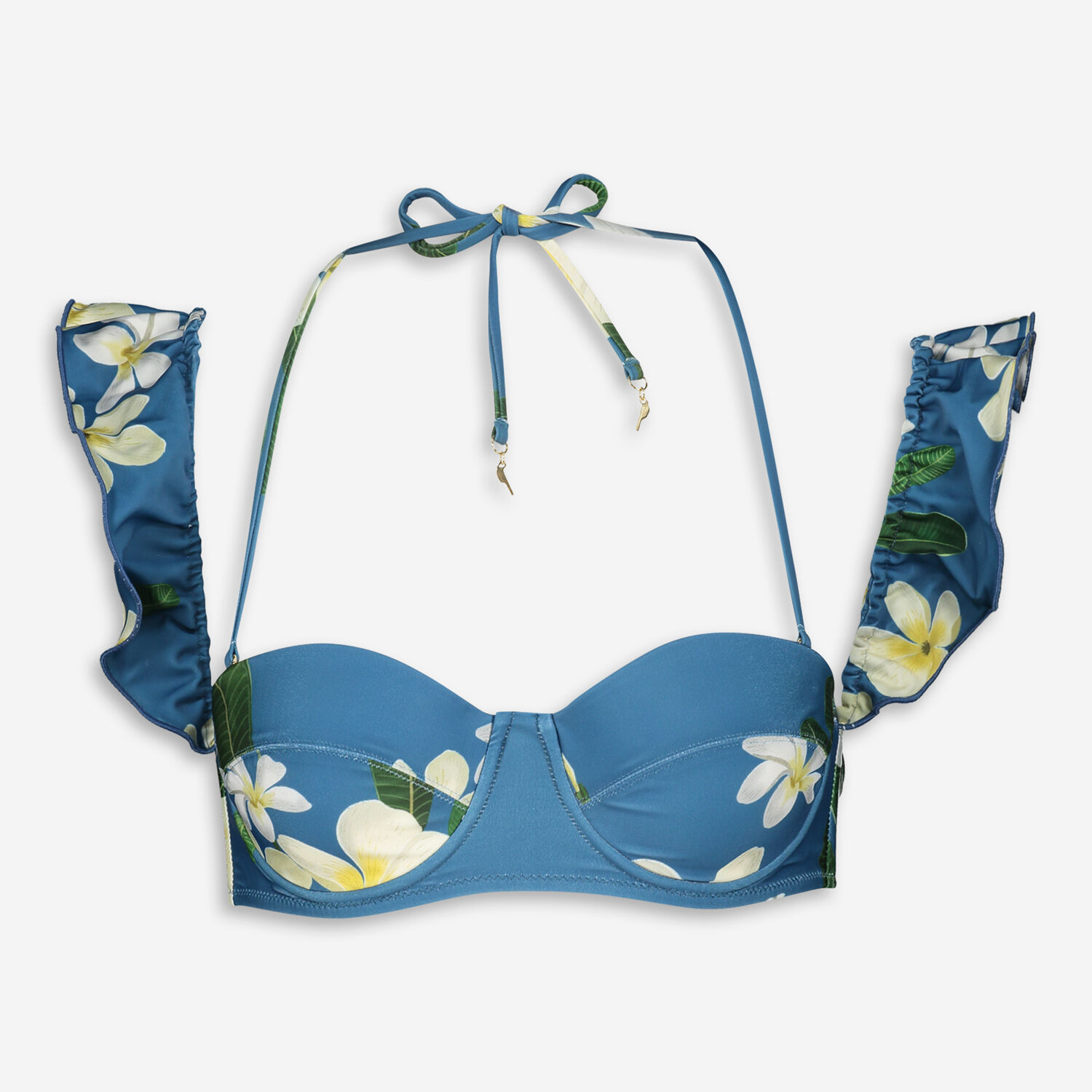 Blue Ruffle Floral Bikini Top