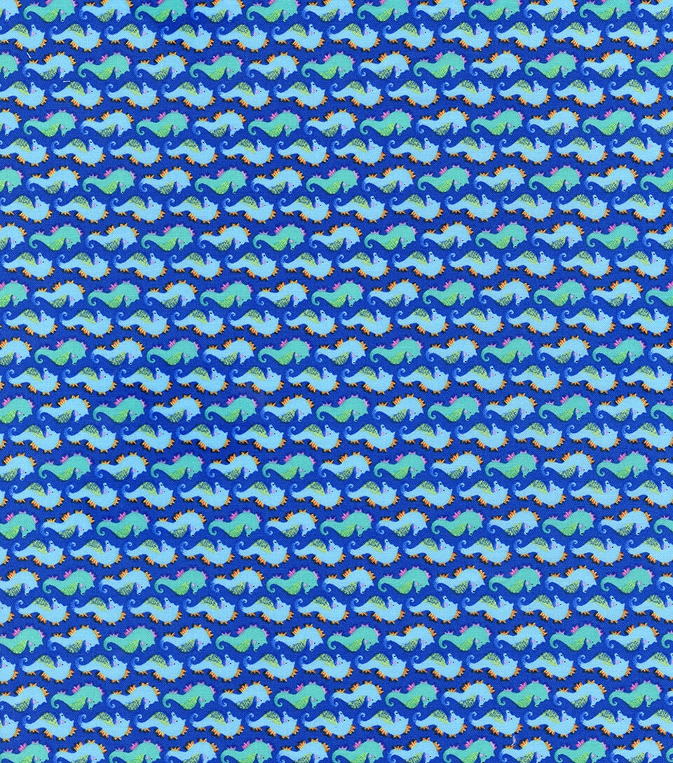 • Blue Seahorses Novelty Cotton Fabric