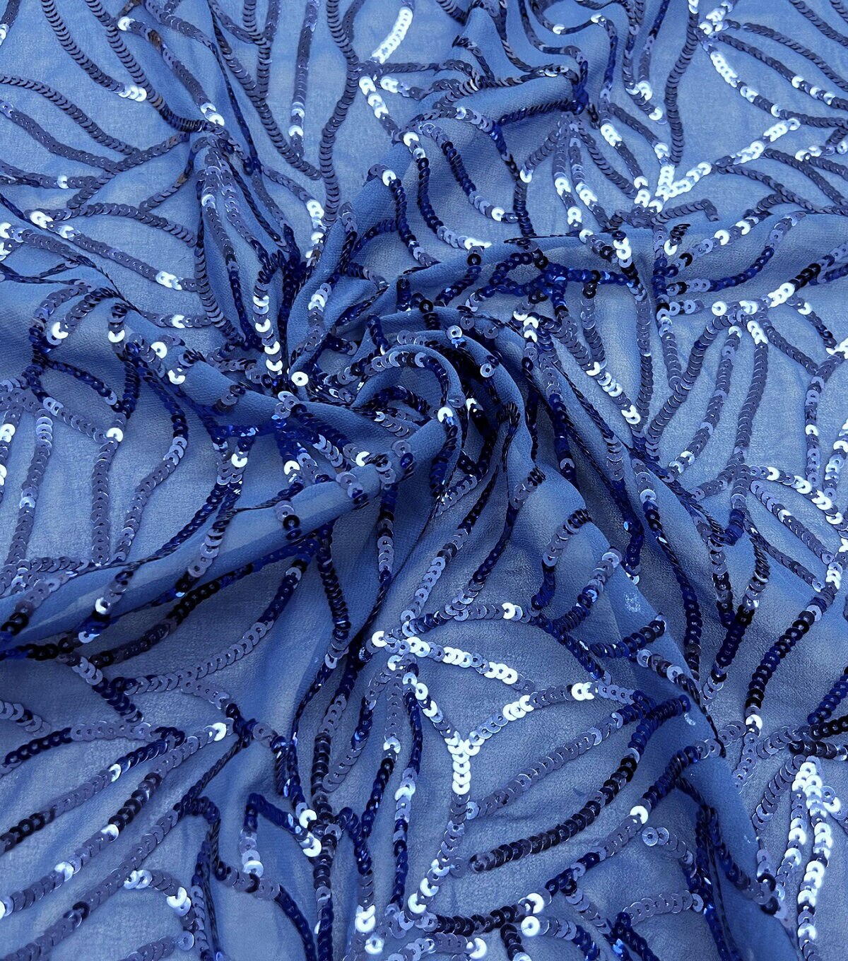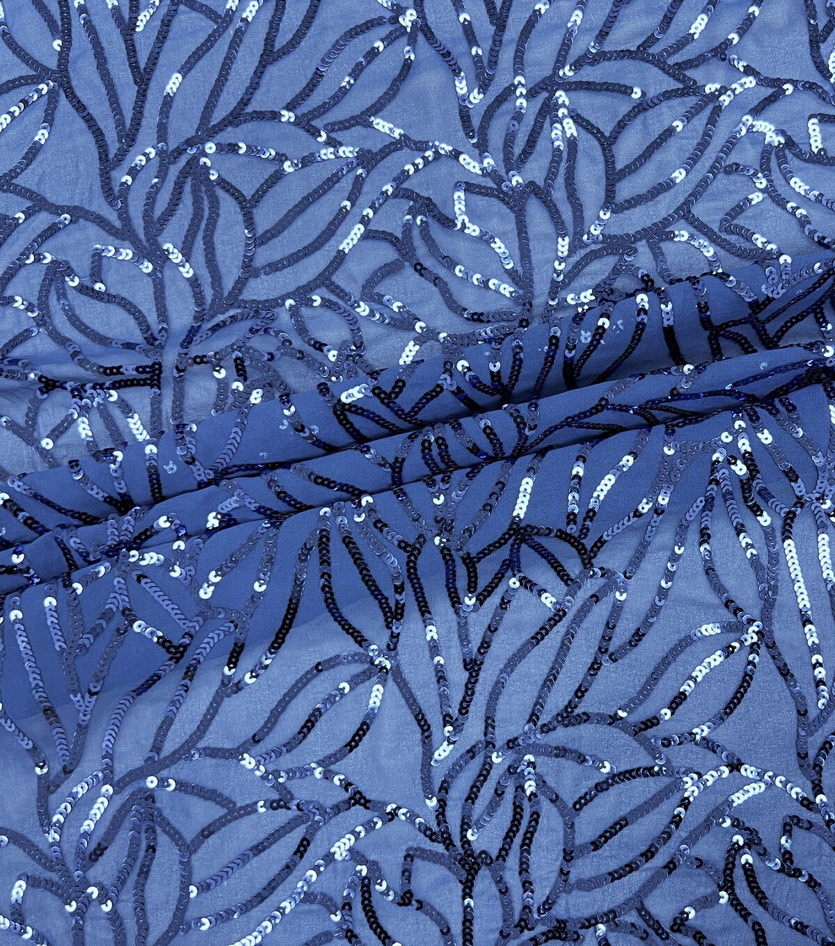 • Blue Sequin Chiffon Fabric
