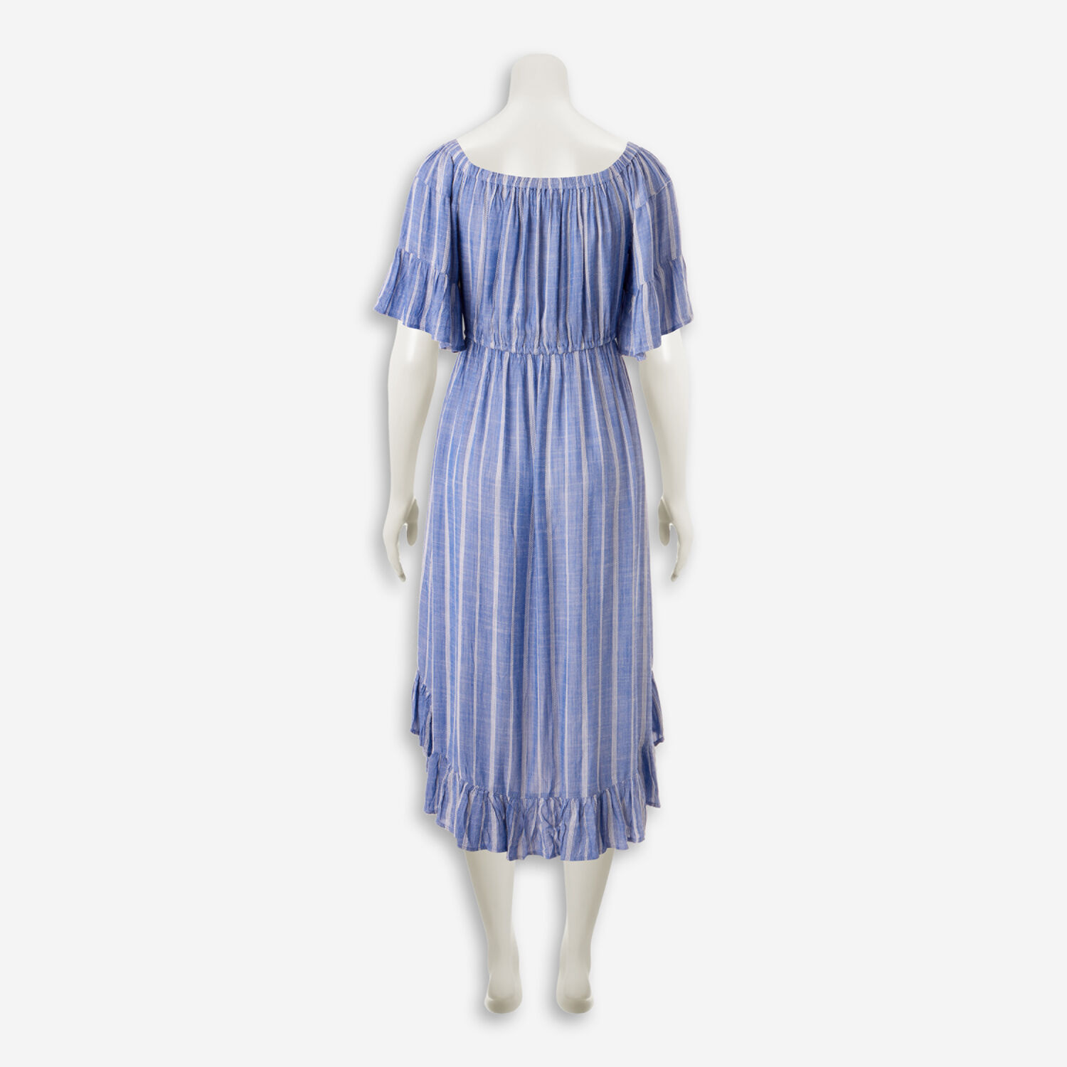 • Blue Stripe Off The Shoulder Dress