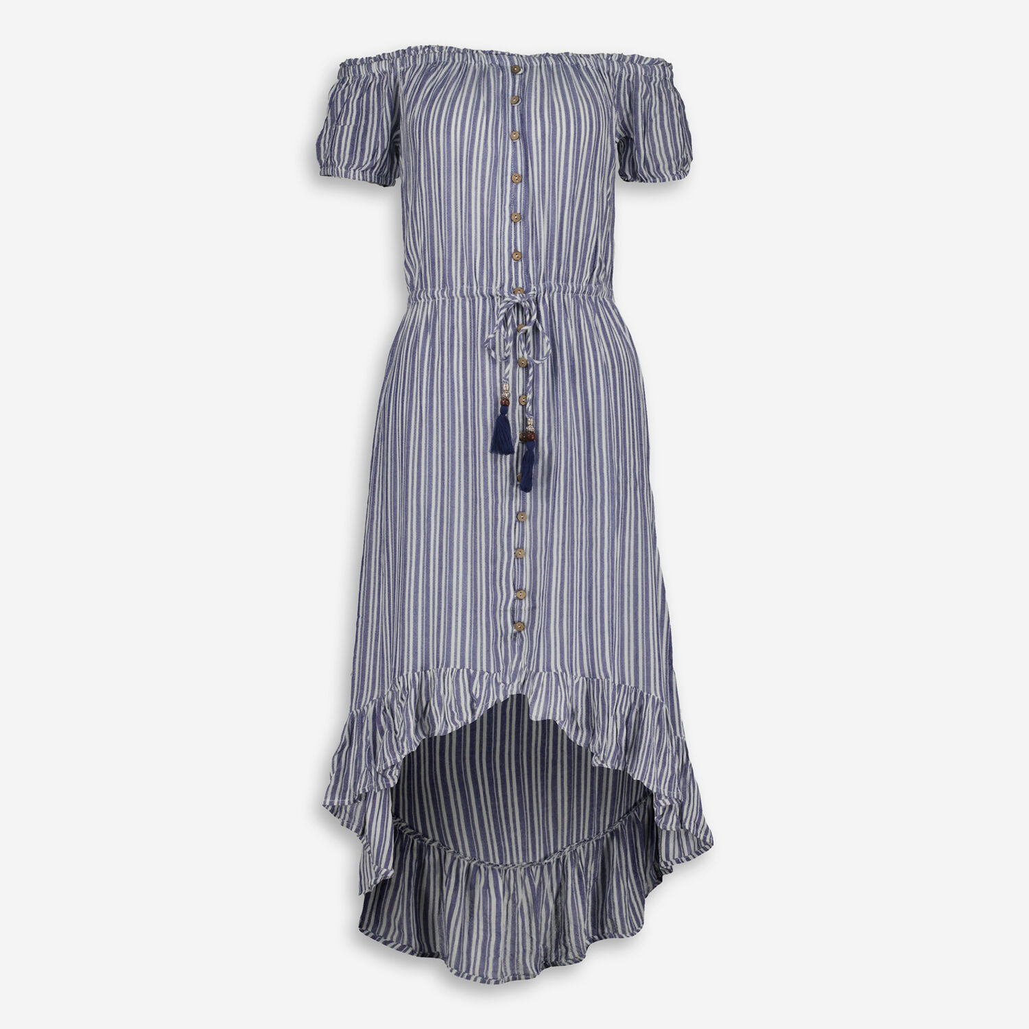 • Blue Striped High Low Beach Coverup