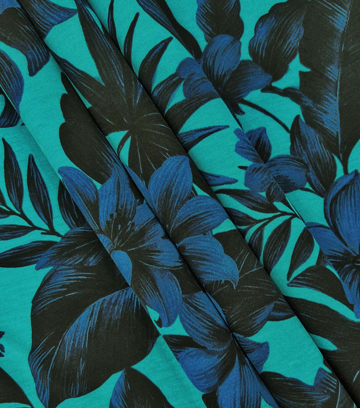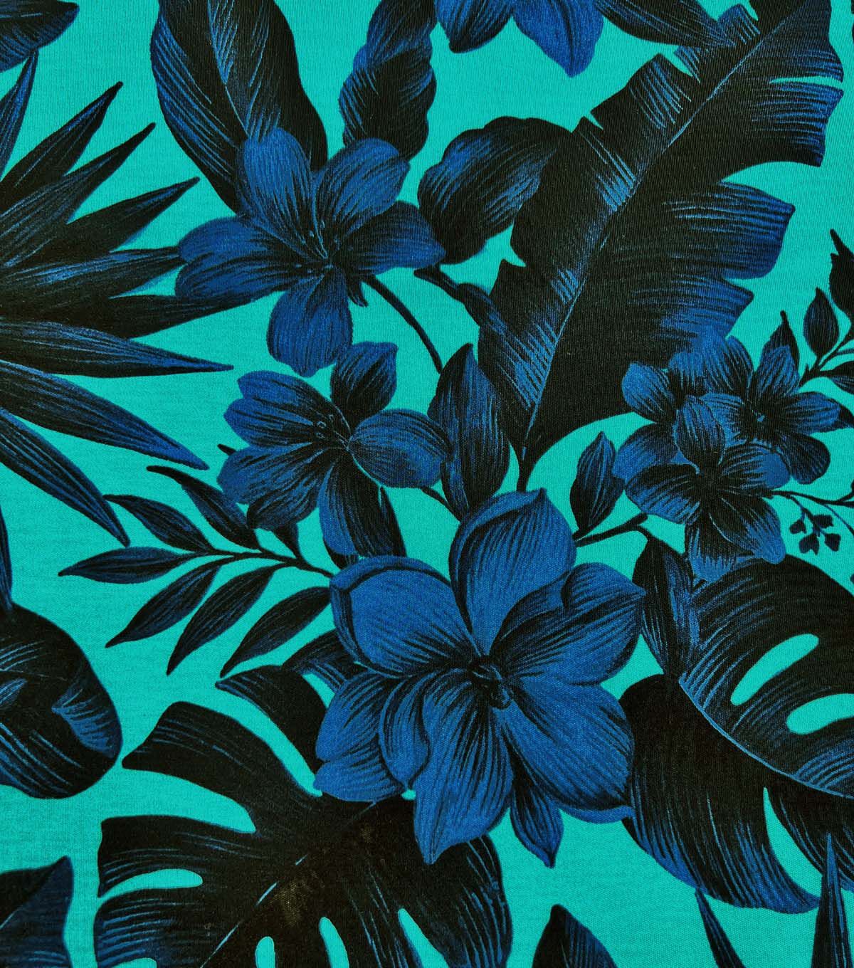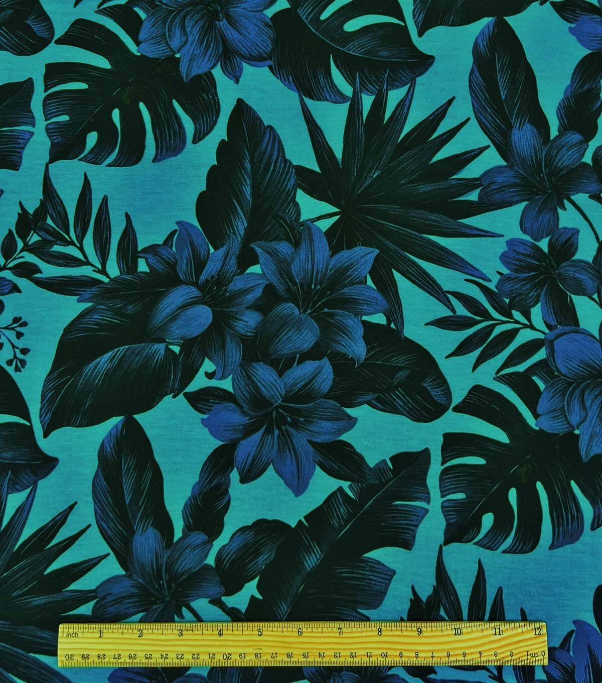 Get Ready for Summer with Blue Tonal Tropical Floral Spandex Knit Fabric