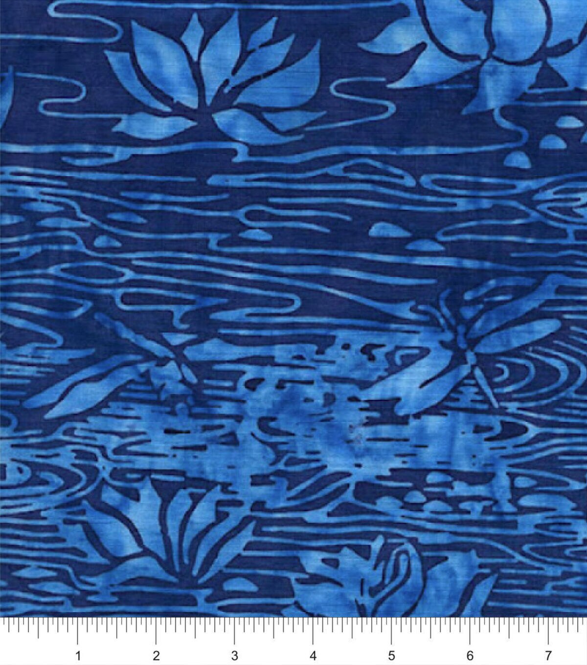 Experience the Beauty of Blue Water Lilies with this Batik Cotton Fabric