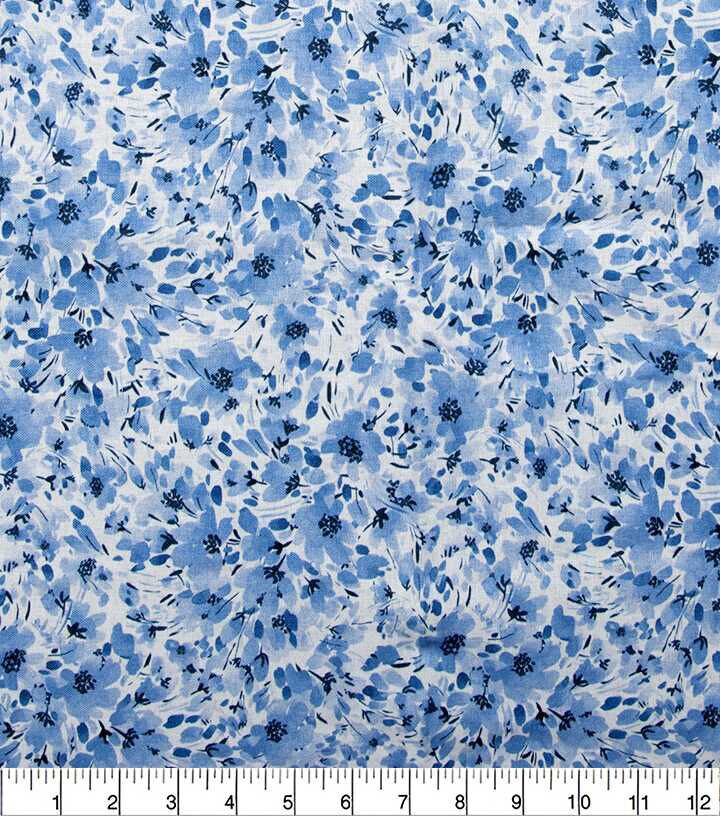 Blue Watercolor Flower Vines Quilt Cotton Fabric by Keepsake Calico