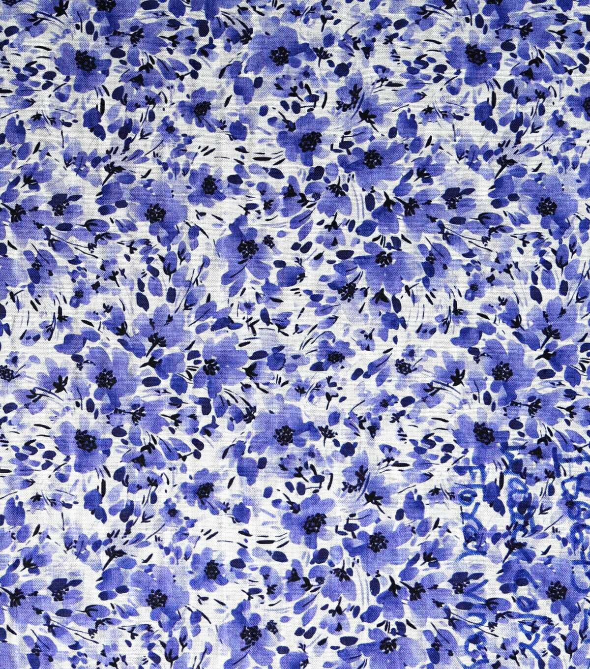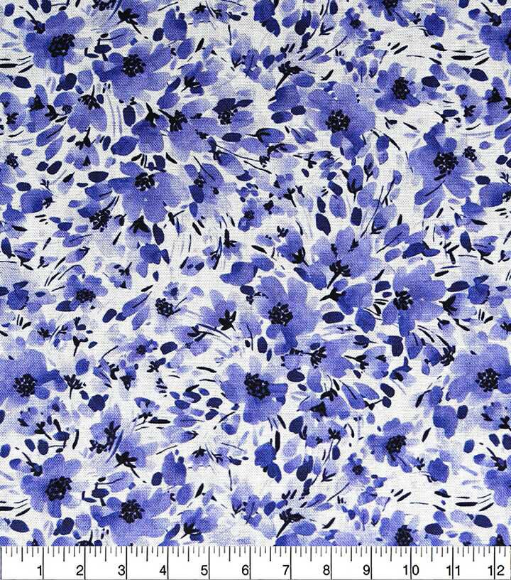 Blue Watercolor Flower Vines Quilt Cotton Fabric by Keepsake Calico