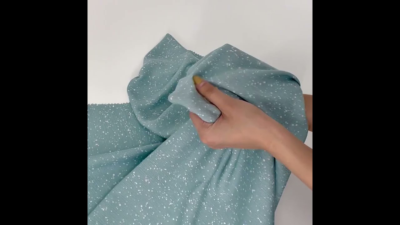 • Blue & White All Over Speckle Crinkle Silky Print Fabric