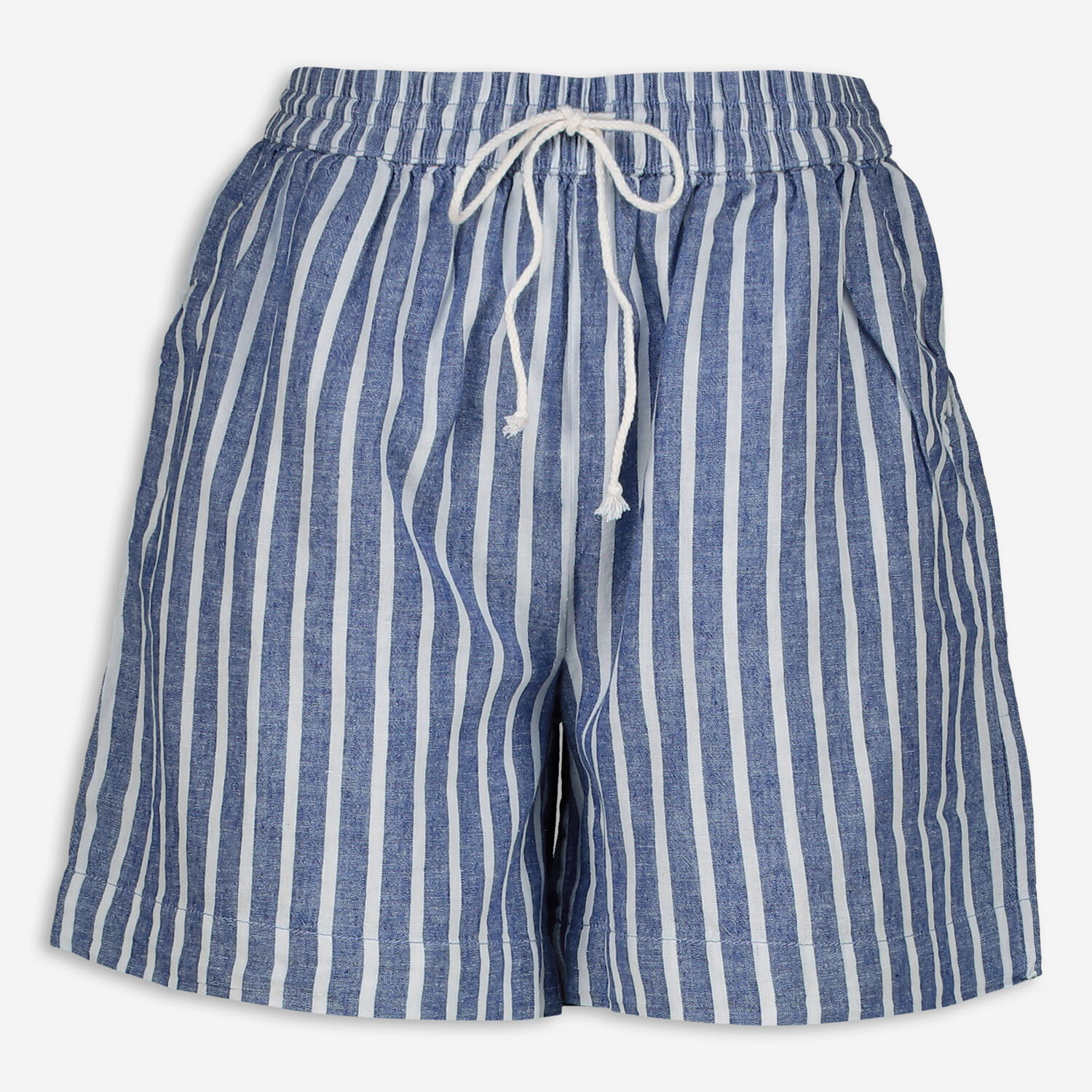 Blue & White Striped Linen Shorts