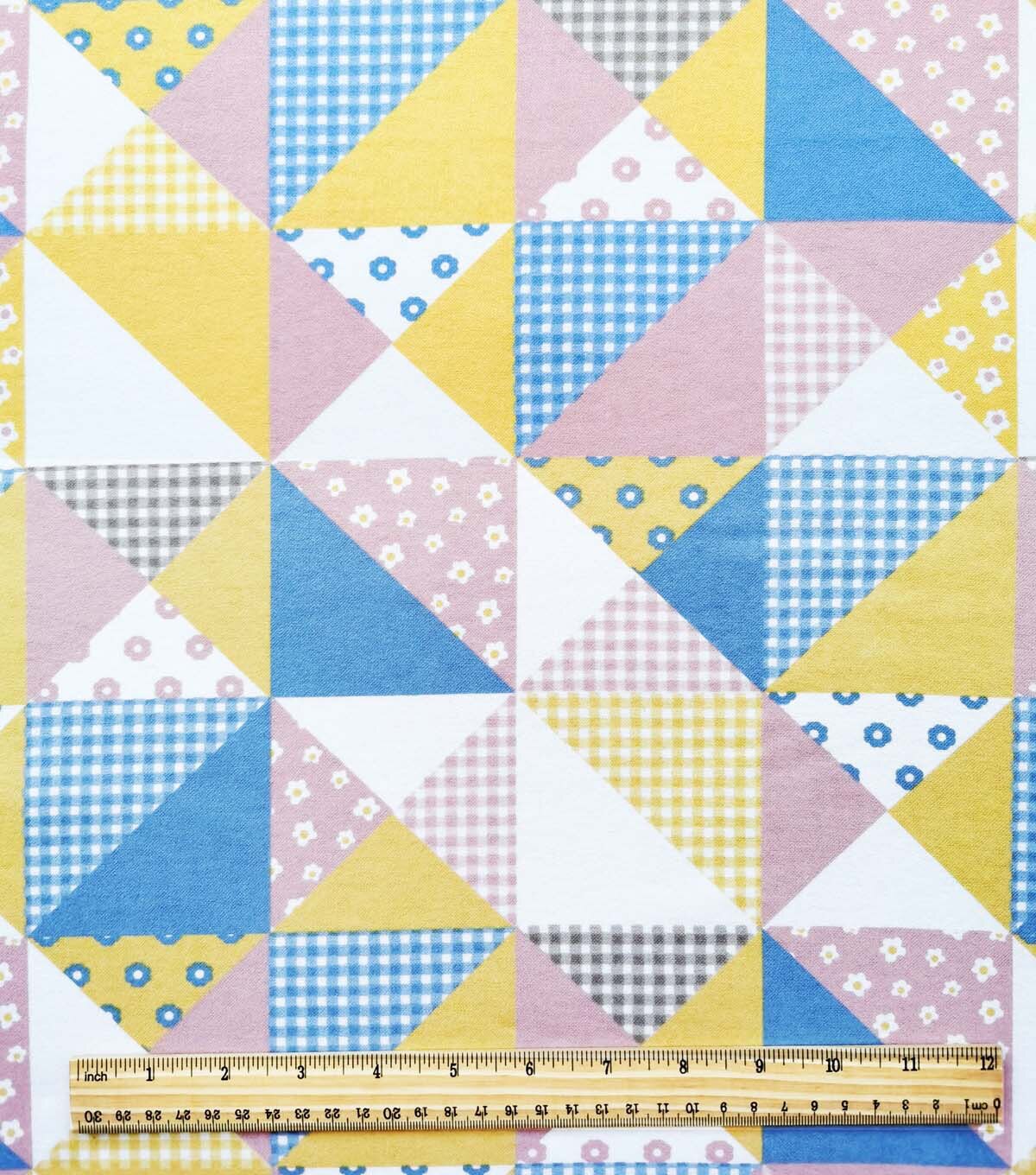 Blue & Yellow Patchwork Nursery Flannel Fabric