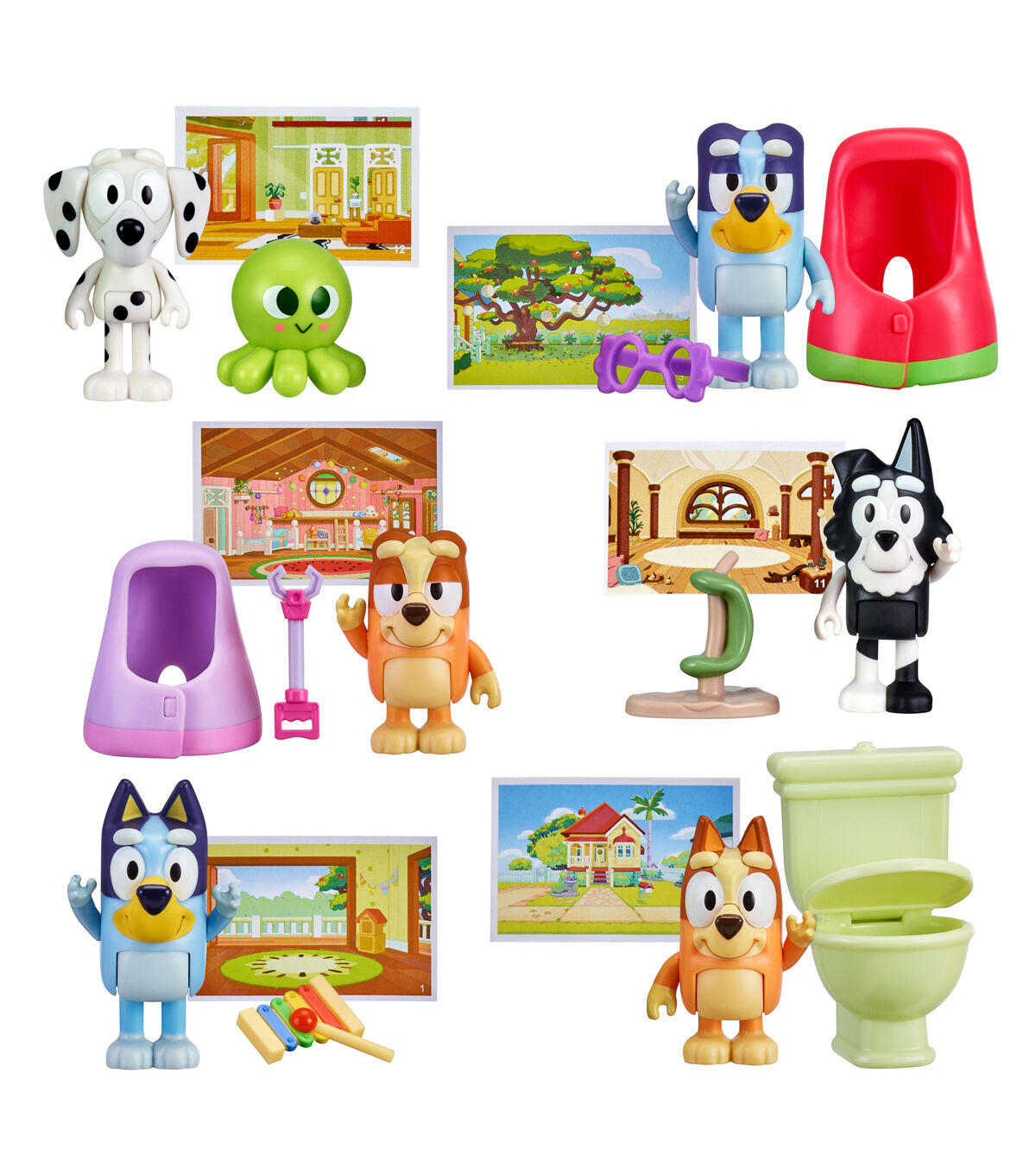 The Bluey Story Starter Packs are inspired by the Bluey TV episodes! Join Bluey, Bingo, and their friends Mackenzie and Chloe as they enjoy imagining and creating stories. Each Story Starter Pack is themed around one of Bluey's episodes and comes with an accessory for your character to play with! Also included in each pack is a cute Mini Postcard showing a scene from the Bluey TV show.