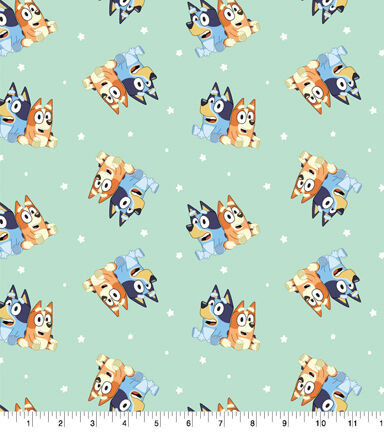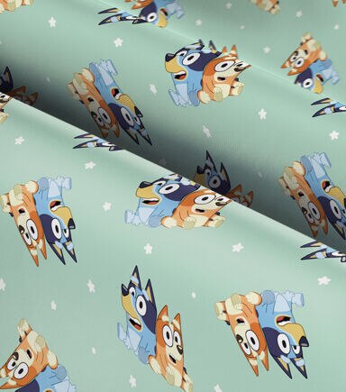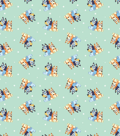 This Bluey and Bingo Best Friends Knit fabric has Bluey and Bingo on a light green background with stars and dots. This fabric would be great for any crafter from beginner to advanced. This fabric would make great gifts for the Bluey fan.