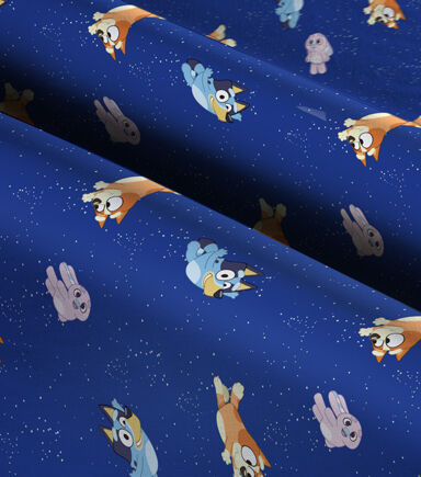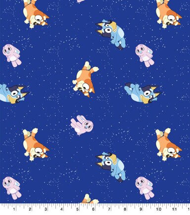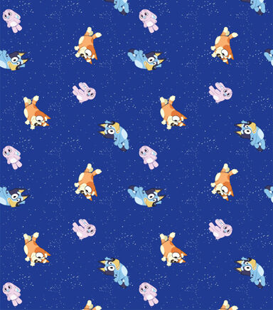 This Bluey Goodnight Cotton fabric is filled with Bluey, Bingo and floppy who are surrounded by stars. This fabric would be perfect for a throw blanket or pillow covers. It is 100% Cotton and machine washable.