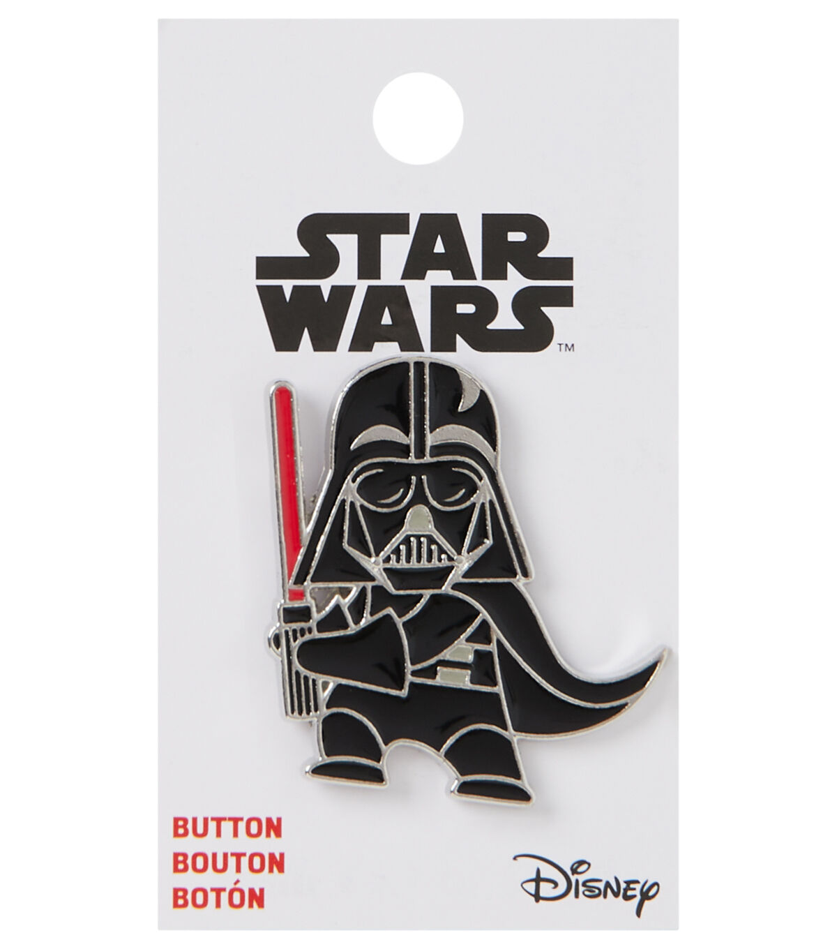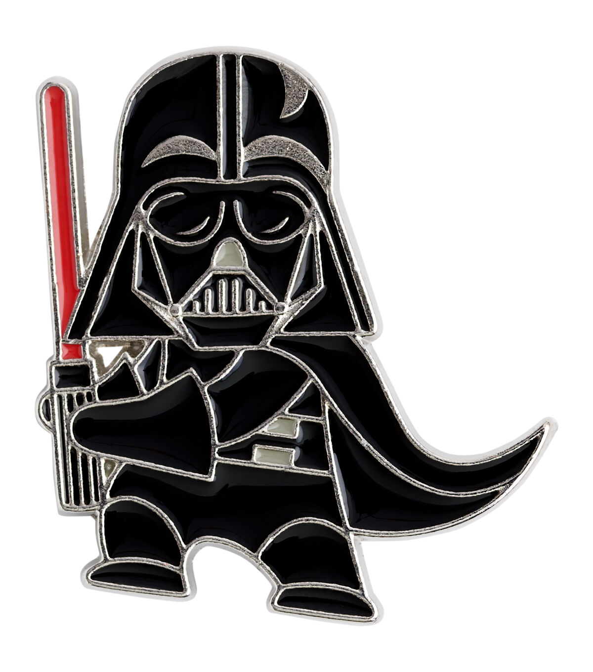 The Blumenthal Lansing Star Wars Darth Vader Enamel Button - Black will make the perfect gift for a ‘Star Wars’ fan you are close to. This button is shaped like the Darth Vader from the 'Star Wars' series and is designed with a lightsaber and will make a great addition to tees,backpacks,jackets and more.