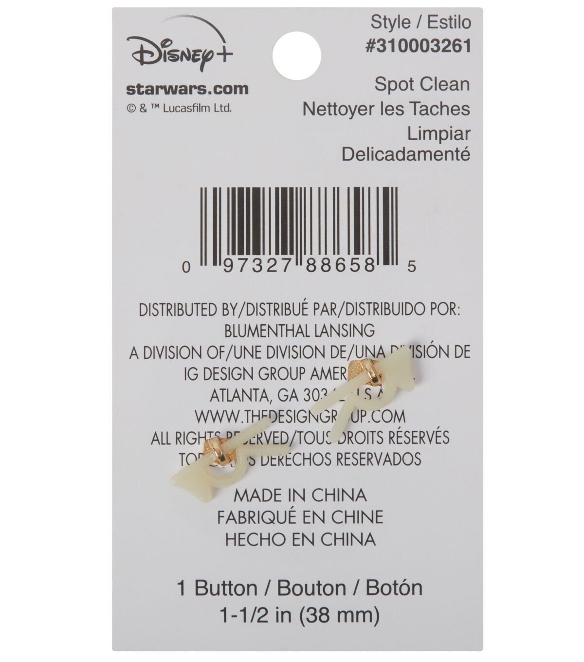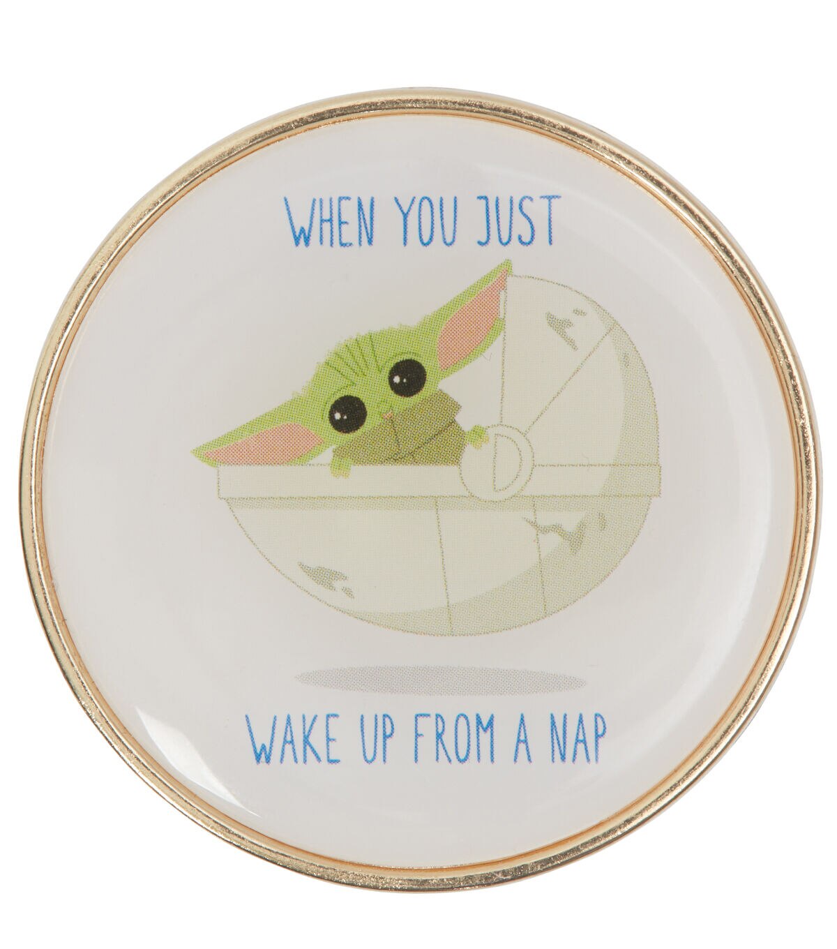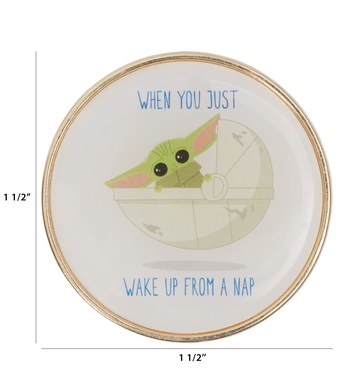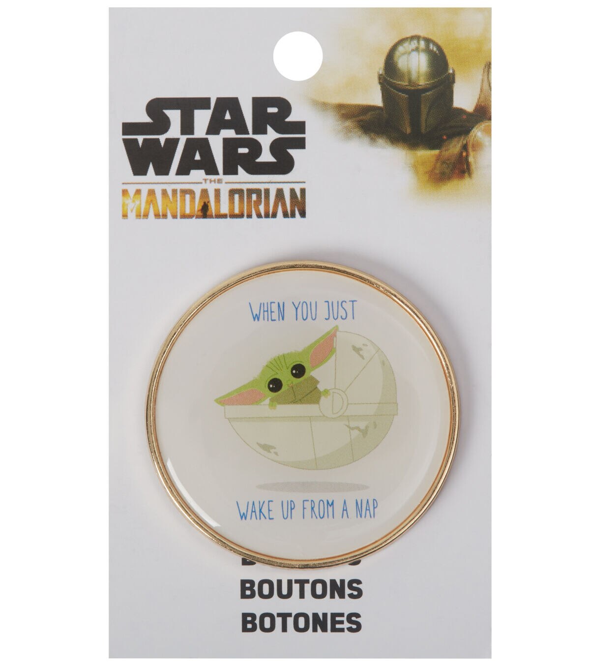 Use the Blumenthal Lansing Star Wars The Mandalorian Epoxy Button to lend a beautiful finishing touch to your handmade creations. It will make the perfect addition to DIY sweaters,dresses,tops and more. This round button sports Grogu from the popular series ‘The Mandalorian’ and the words ‘When You Just Wake up from a Nap’ for added visual flair.