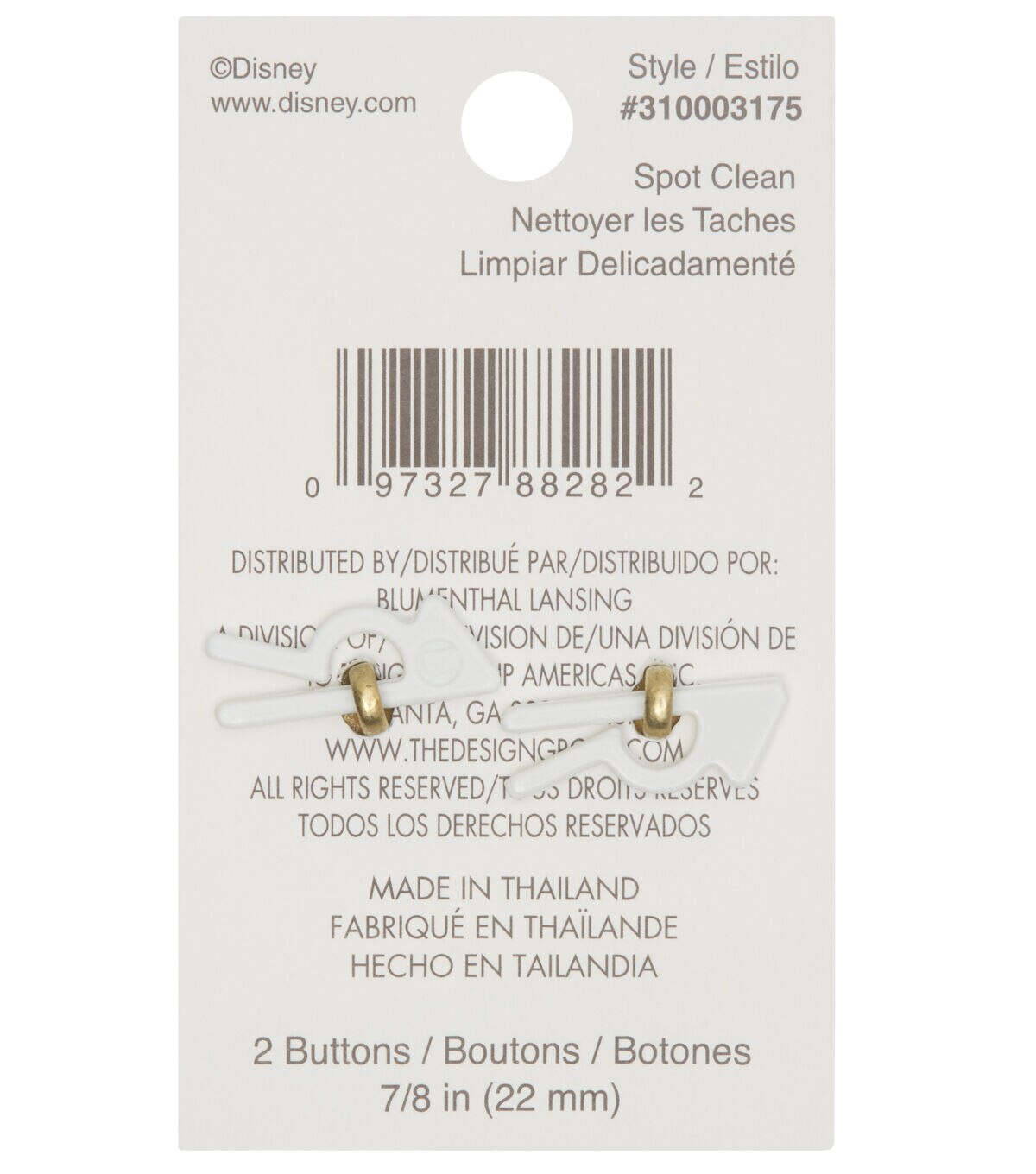 Enhance handmade apparel using the Blumenthal Lansing Enamel Minnie Face Shank Buttons - Multi. These enamel buttons resemble Minnie Mouse’s face and will be just right to add to your little girl’s dresses or tops. You can also use them to spruce up a fabric tote,wallet and more. This pack contains two buttons.