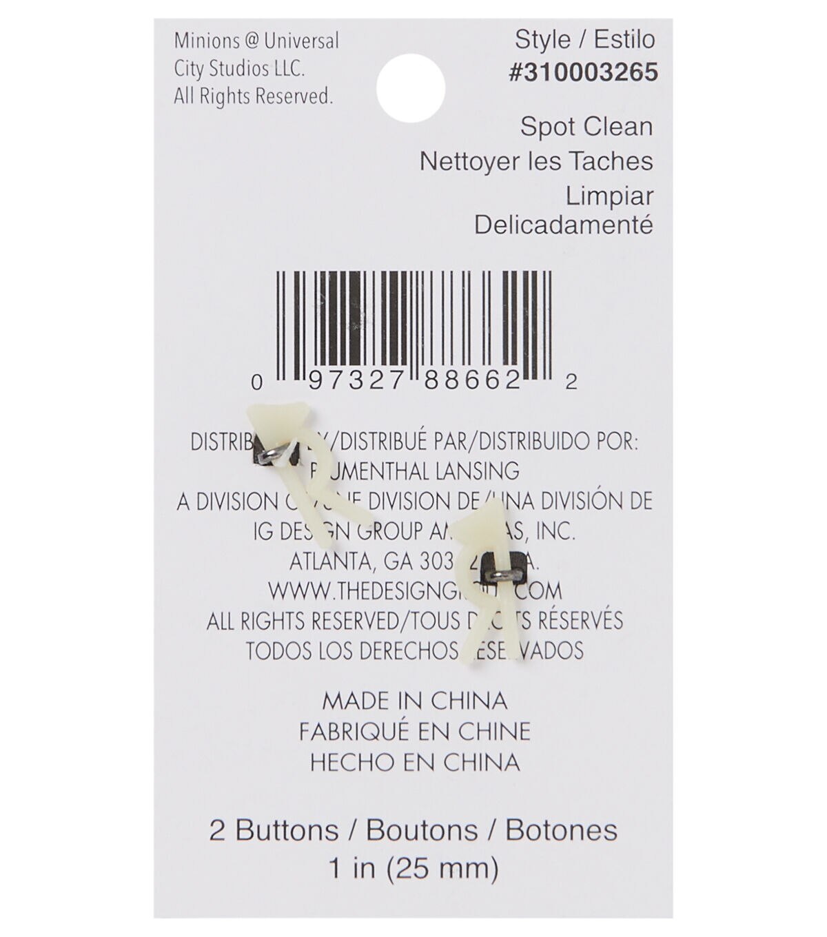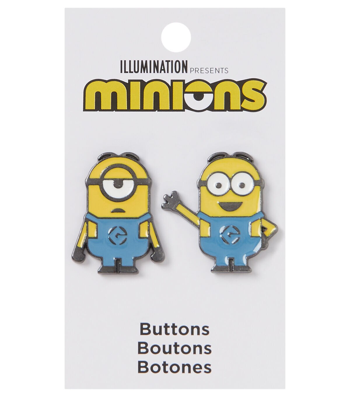 The Blumenthal Lansing Minions Bob & Stuart Enamel Buttons - Multi will add a quirky touch to your fabric projects. This pack contains two buttons shaped like minions, Bob and Stuart. Displaying lovely contrasting colors, these shank buttons will add a fun twist to DIY fabric totes, wallets and more. You can also team them with other buttons in complementing shades for added charm.