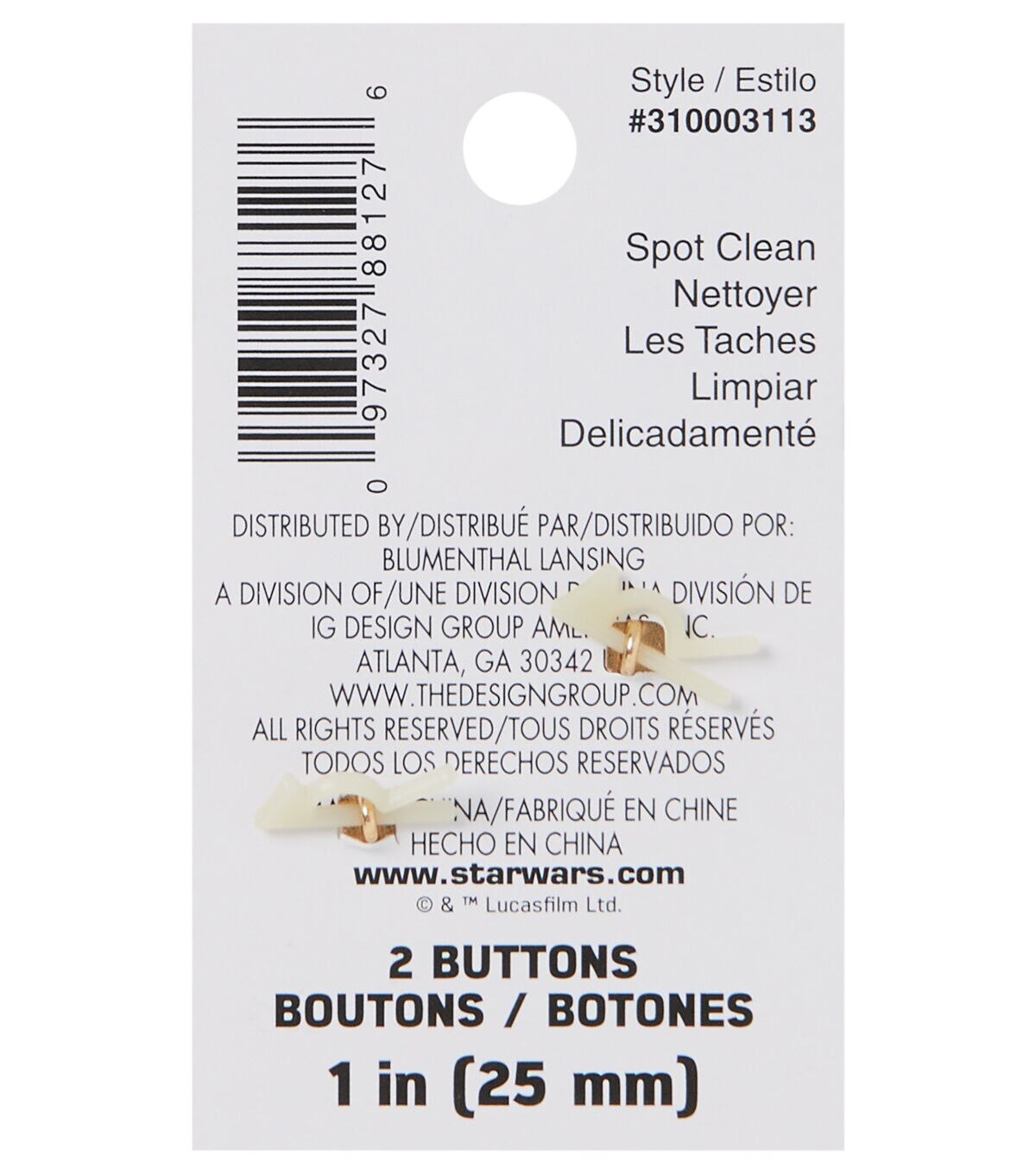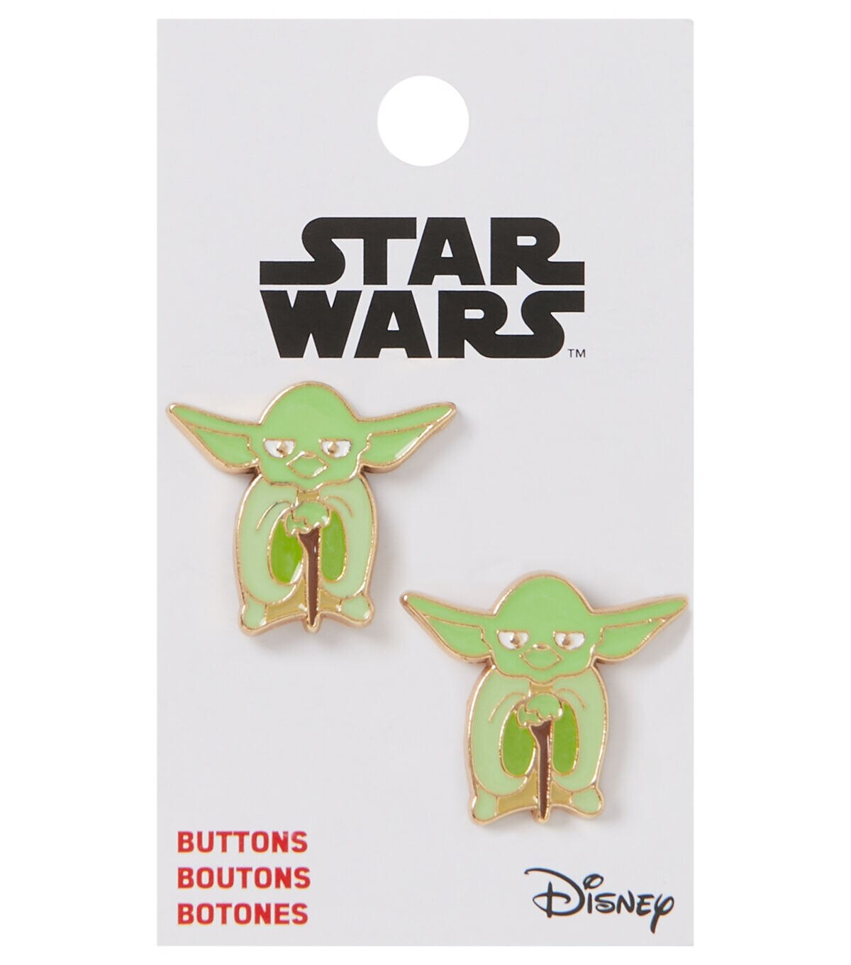 Add an interesting twist to your handmade creations with the Blumenthal Lansing Star Wars Baby Yoda Enamel Buttons - Multi. Resembling Yoda from the famous multimedia franchise ‘Star Wars,’ these buttons are unique. You can use it to adorn backpacks,tote bags,jackets and more. Team them with buttons shaped like the other characters from the show,sold separately,for added charm.